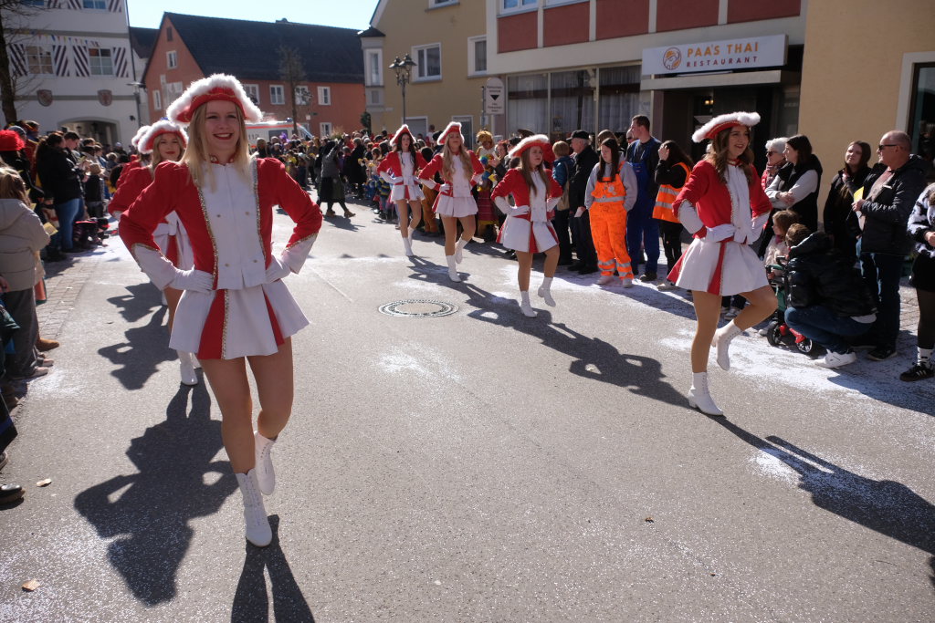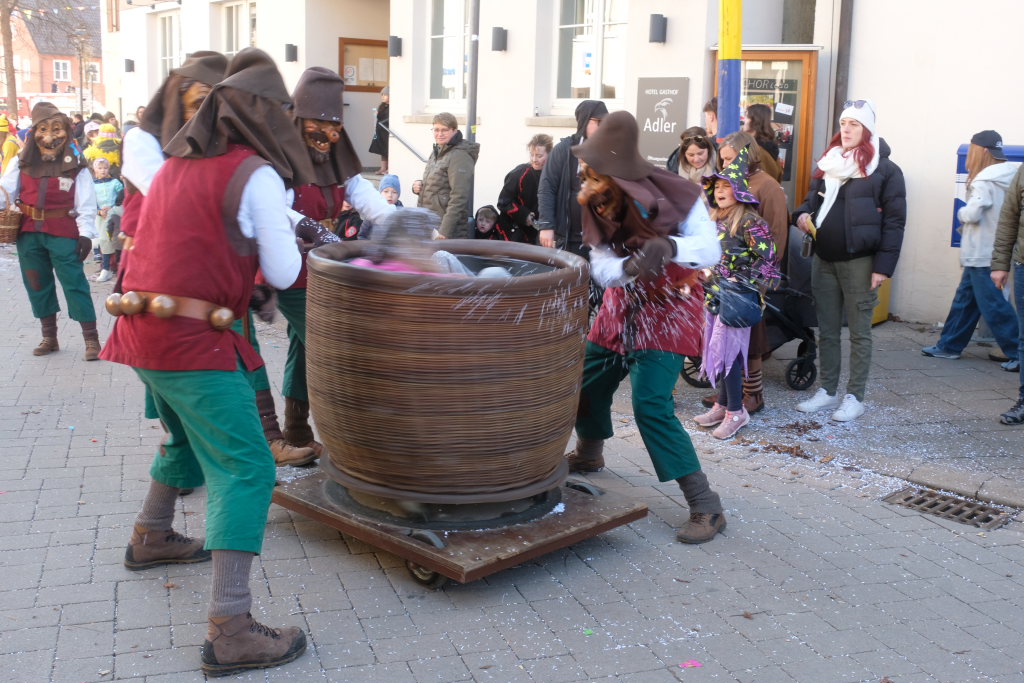 Beliebte Ziele der Narren waren wie immer junge, hübsche Mädchen und die wurden gerne im wahrsten Sinne des Wortes etwa in den kreiselnden „Kretta“ der Dettinger Krettamacher „eingeladen“. Die vielen Konfettifrisuren, egal ob von Erwachsenen oder Teenagern am Umzugsweg, legten beredtes Zeugnis davon ab, dass die Narren herrschen und die Obrigkeit bis Aschermittwoch abgesetzt ist. Und das, obwohl eigentlich Konfettiverbot am Umzugsweg herrschen sollte …
