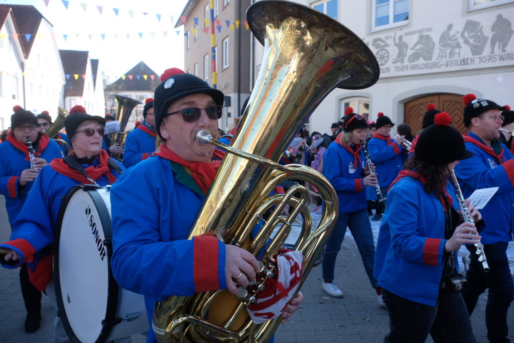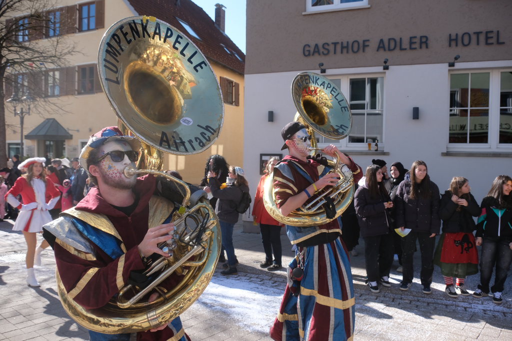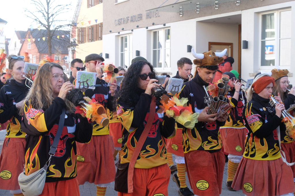 Auch weil es immer schwieriger wird, Musikkapellen, Fanfarenzüge, Lumpenkapellen oder Guggenmusiken zu engagieren, brachten viele Zünfte ihre rollenden Discos mit. Eine löbliche Ausnahme: Neben der Stadtkapelle ist seit vielen Jahren auch der Musikverein Eintürnen mit von der Partie.