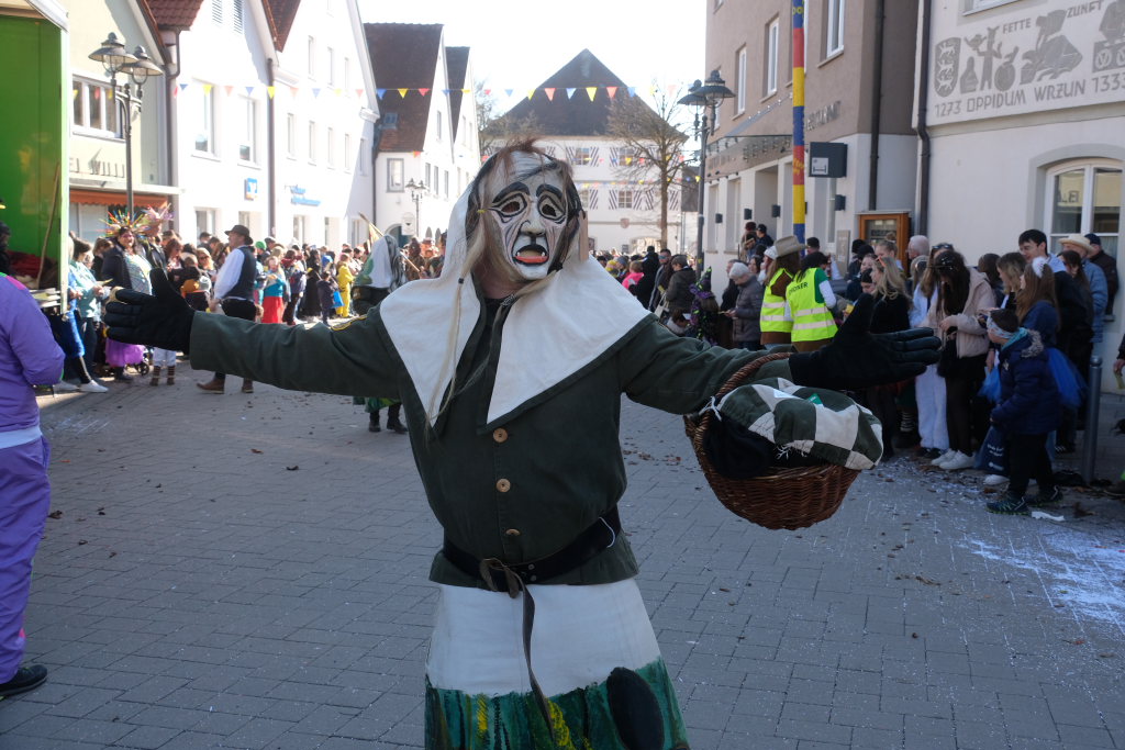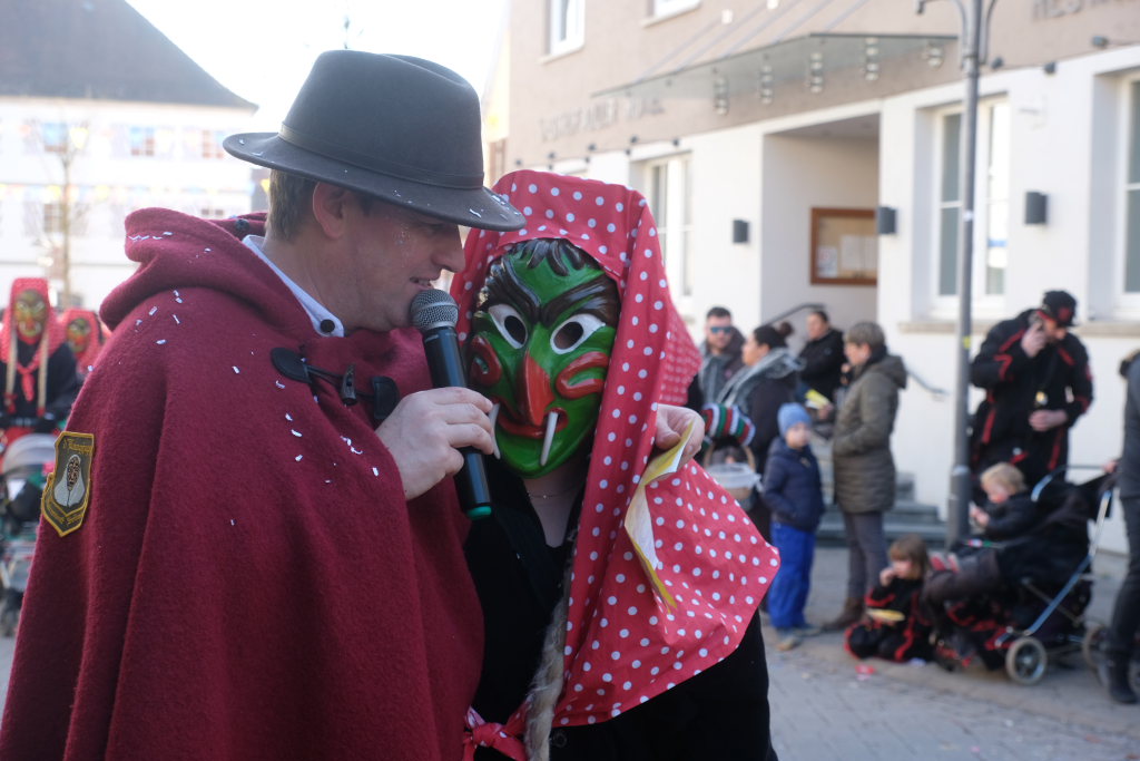 Aus der Ulmer Gegend war die Ulmer Hagel-Hex und die Därles Bärbla aus Oberelchingen angereist. Den weitesten Anfahrtsweg hatte die Holma´le Zunft aus Ingersheim bei Bietigheim-Bissingen.