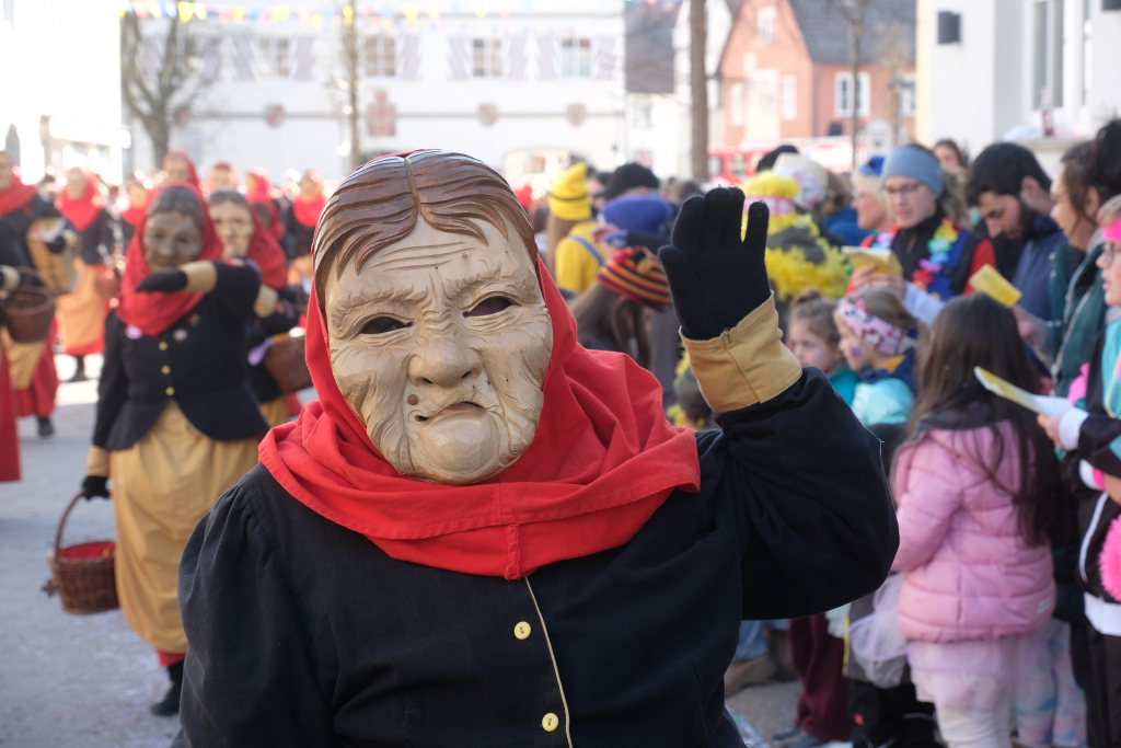 Für die Kinder aber erwiesen sich die auf den ersten Blick furchteinflößenden Masken und Larven oft als freundliche, zu allerlei Schabernack aufgelegte und freigebige Narrenfiguren. Wer von Alt und Jung brav die verschiedenen Narrensprüche wie „Bawald-Bohle“, „Hoorig-hoorig, hoorig isch die Katz “ oder „No it huddla – Ofanudla“ beantwortete, durfte auf Gnade hoffen und bekam als Belohnung auch mal das eine oder andere – auch flüssige – Guatsle.