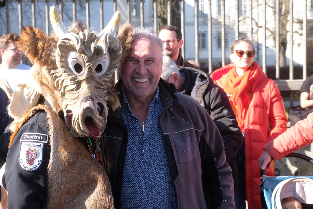Aus der Großgemeinde waren natürlich fast alle Zünfte mit großen Abordnungen vertreten, etwa die Arnacher Schoafböck, die Hauerzer Baadgoischd´r, die Narrengilde Unterschwarzach, die Seibranzer Langjupp und auch das ein halbes Jahrhundert altgewordene Geburtstagskind, die Haidgauer Chadalohs. Für die in rot-weiß gewandeten Weißnarren war es an diesem Tag bereits der zweite Umzug, denn am Vormittag waren sie bereits in Ravensburg zugange gewesen. Nicht fehlen durften natürlich die „Freunde des Ungeziefers“, die in diesem Jahr als Picasso-Wanzen unterwegs waren, ebensowenig wie die „Haidgauer Sippe“, eine Gauditruppe mit langjähriger Tradtion.