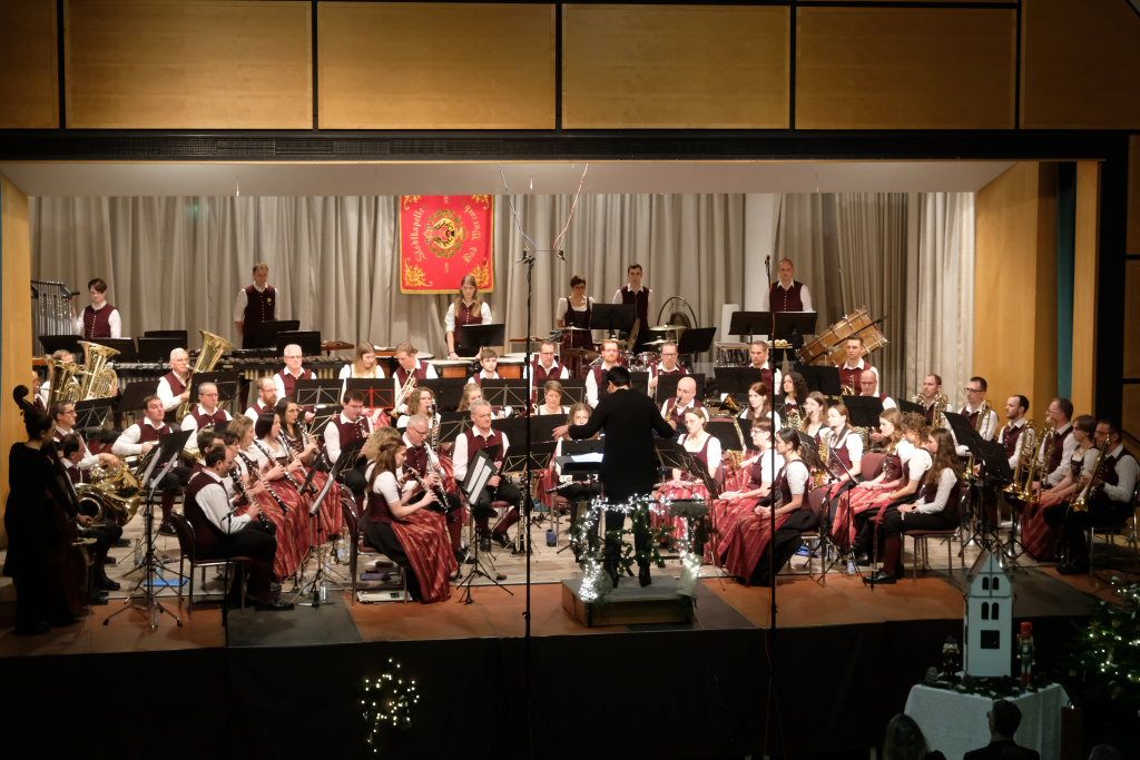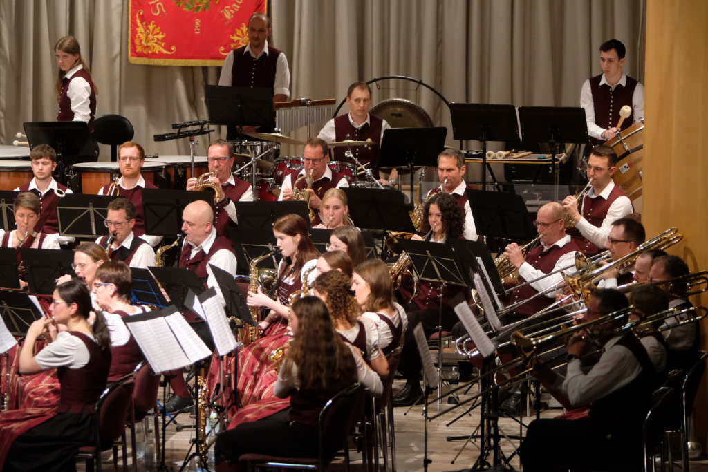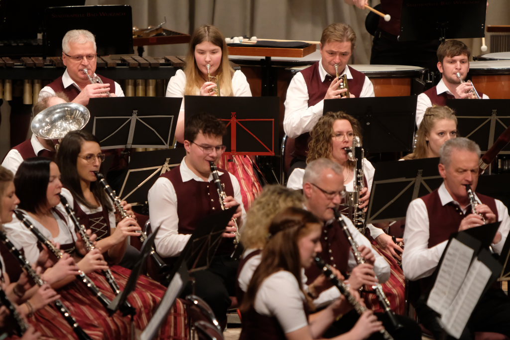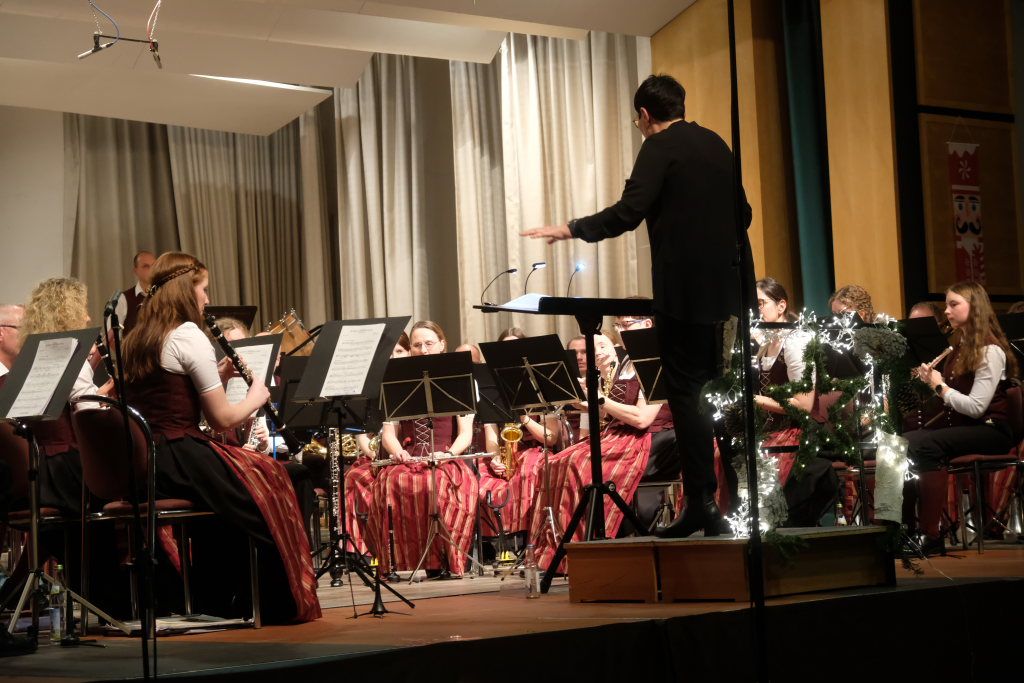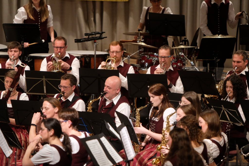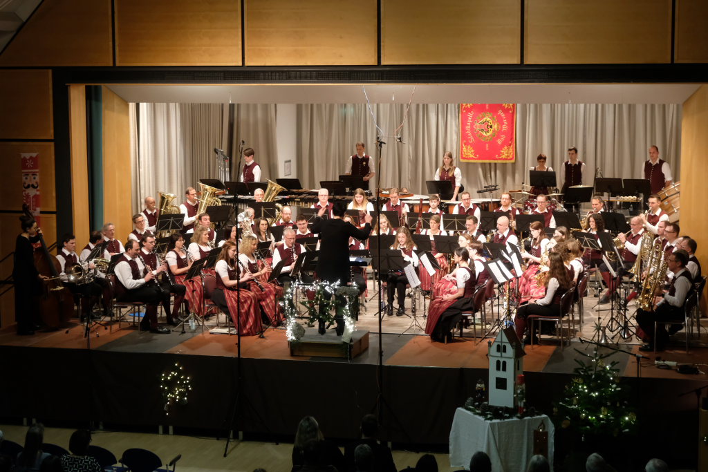 Bad Wurzach – Dirigentin Petra Springer und ihre 61 Musikerinnen und Musiker der Stadtkapelle hatten für ihr diesjähriges Jahreskonzert am 7. Dezember eine phantastische Mischung aus klassischer symphonischer Blasmusik und experimenteller Musik mit E-Gitarre einstudiert. Stücke, die allesamt hohe bis höchste Ansprüche an das musikalische Können der Musiker stellte.
