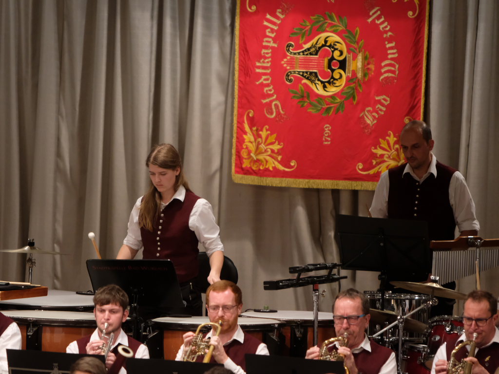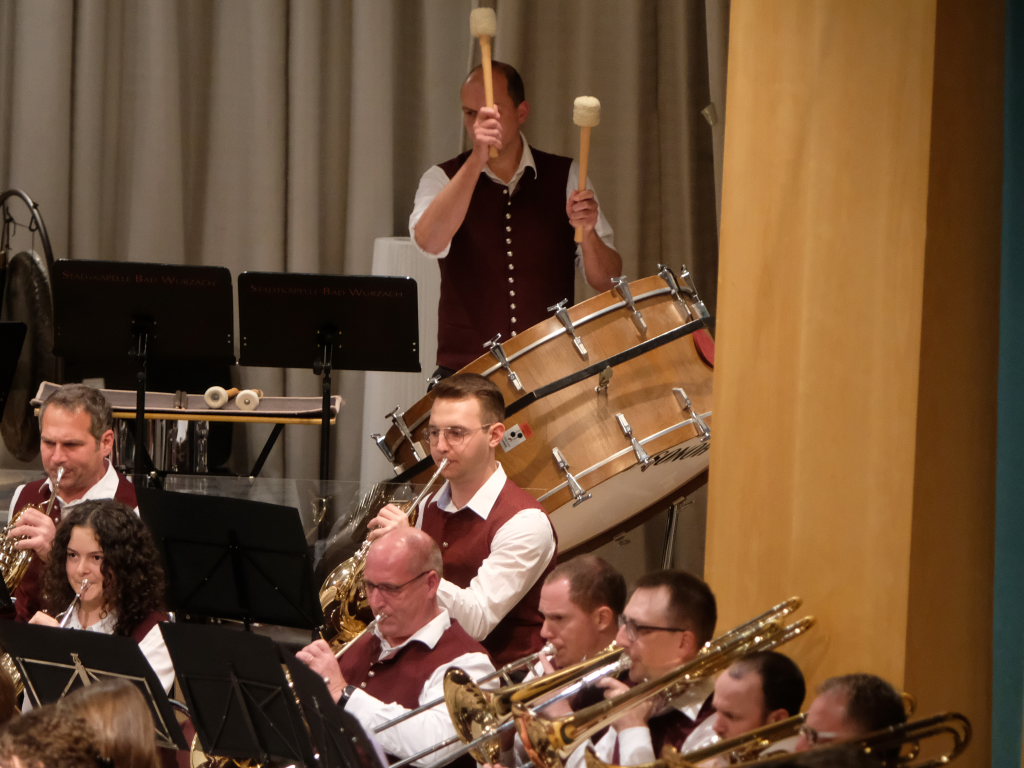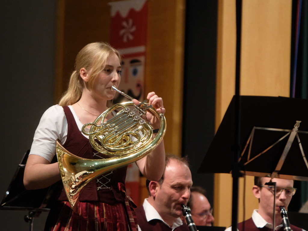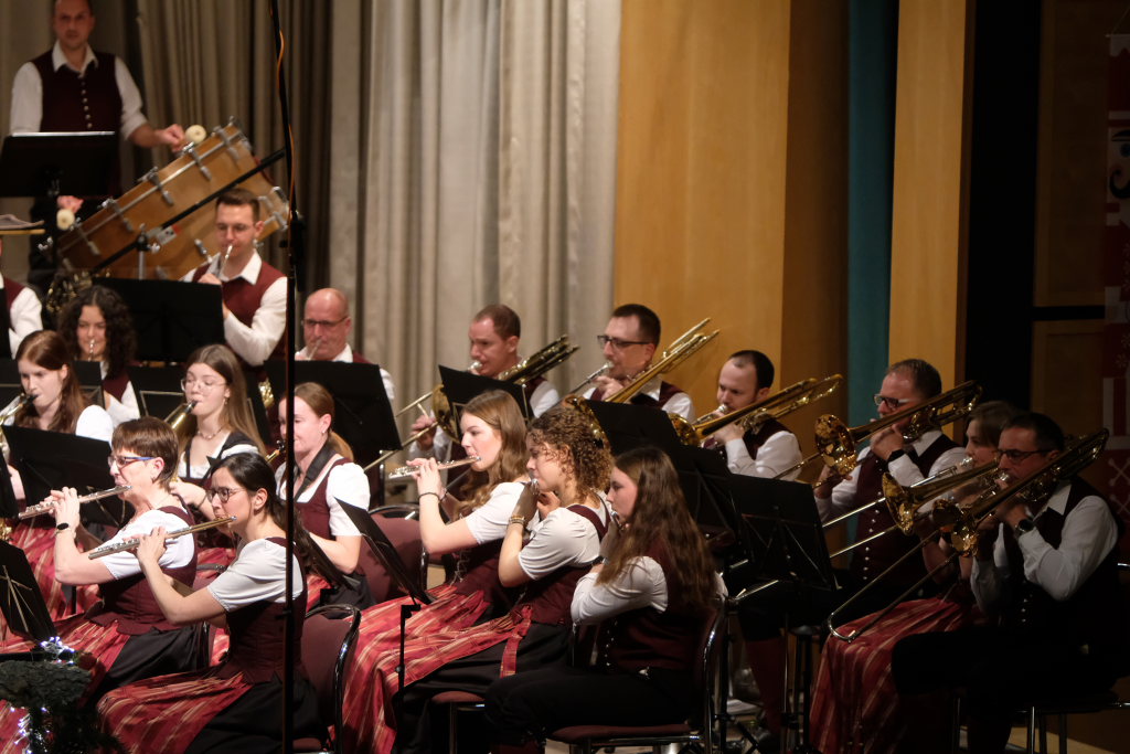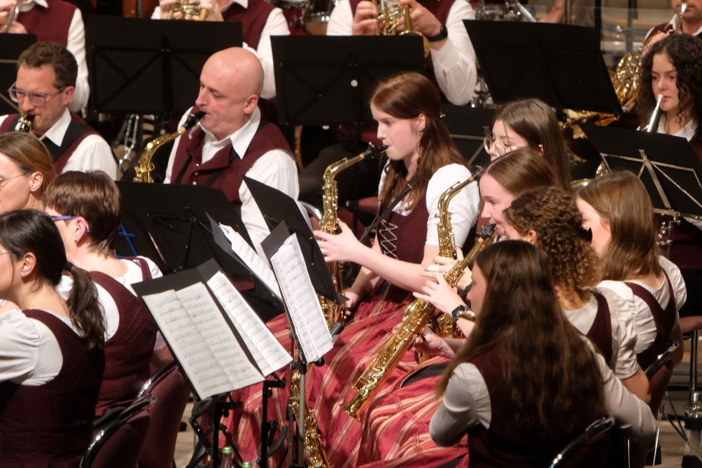 Bad Wurzach – Dirigentin Petra Springer und ihre 61 Musikerinnen und Musiker der Stadtkapelle hatten für ihr diesjähriges Jahreskonzert am 7. Dezember eine phantastische Mischung aus klassischer symphonischer Blasmusik und experimenteller Musik mit E-Gitarre einstudiert. Stücke, die allesamt hohe bis höchste Ansprüche an das musikalische Können der Musiker stellte.