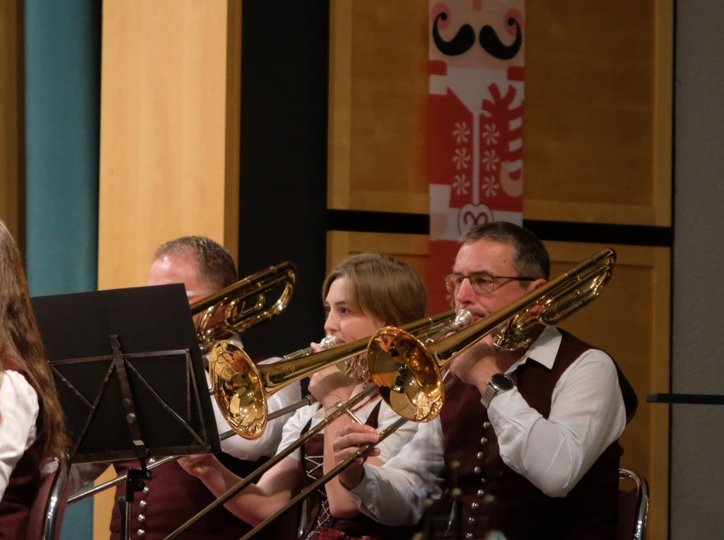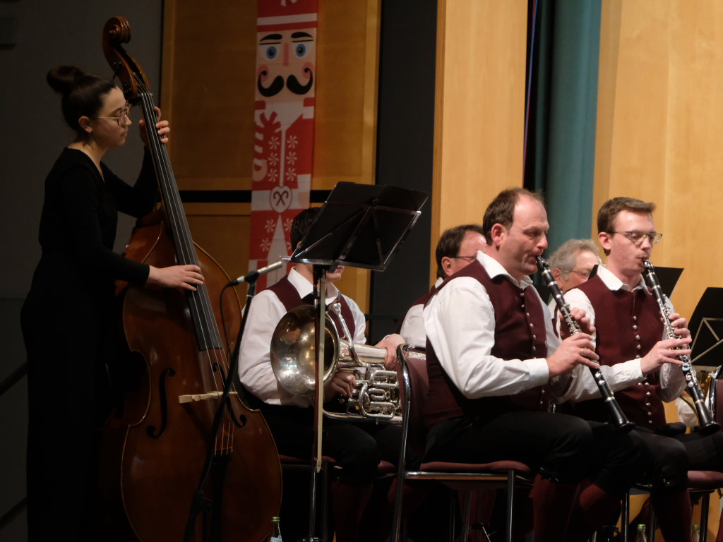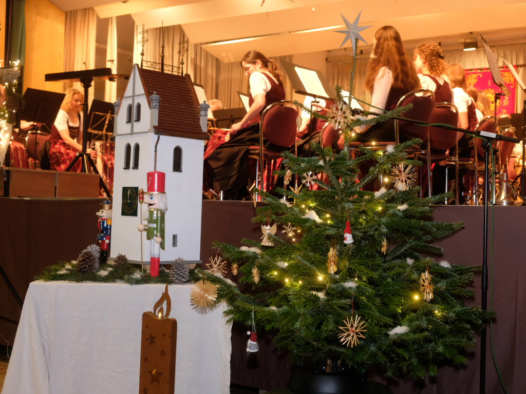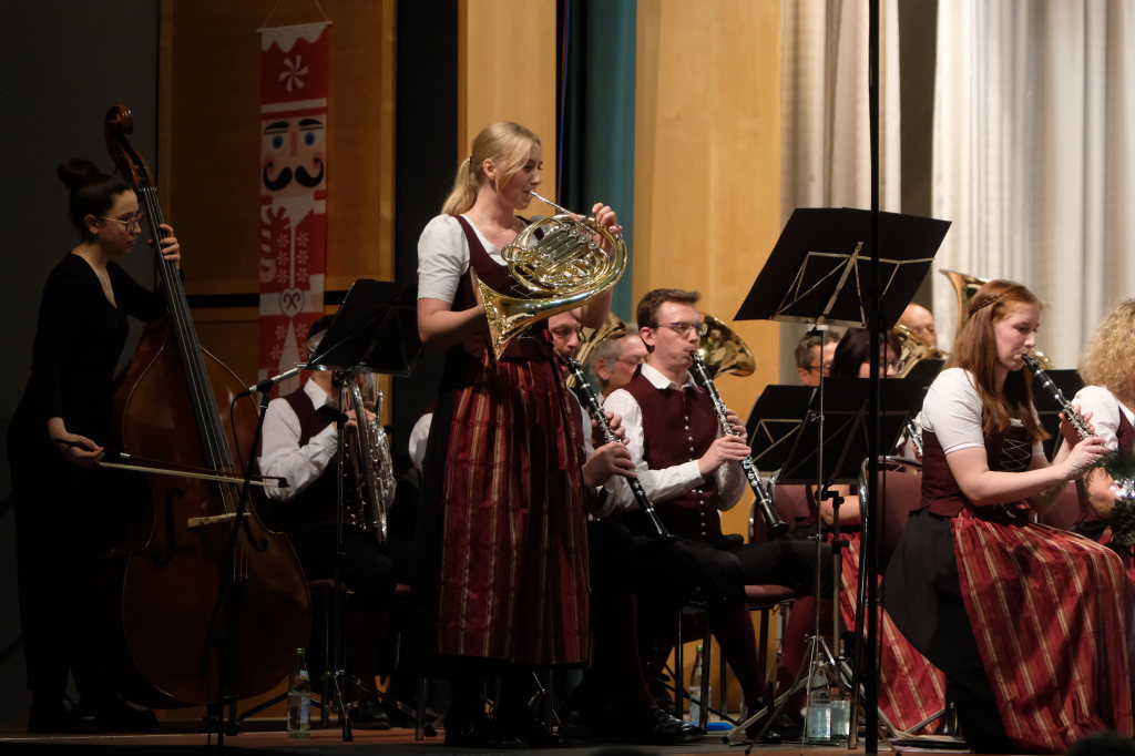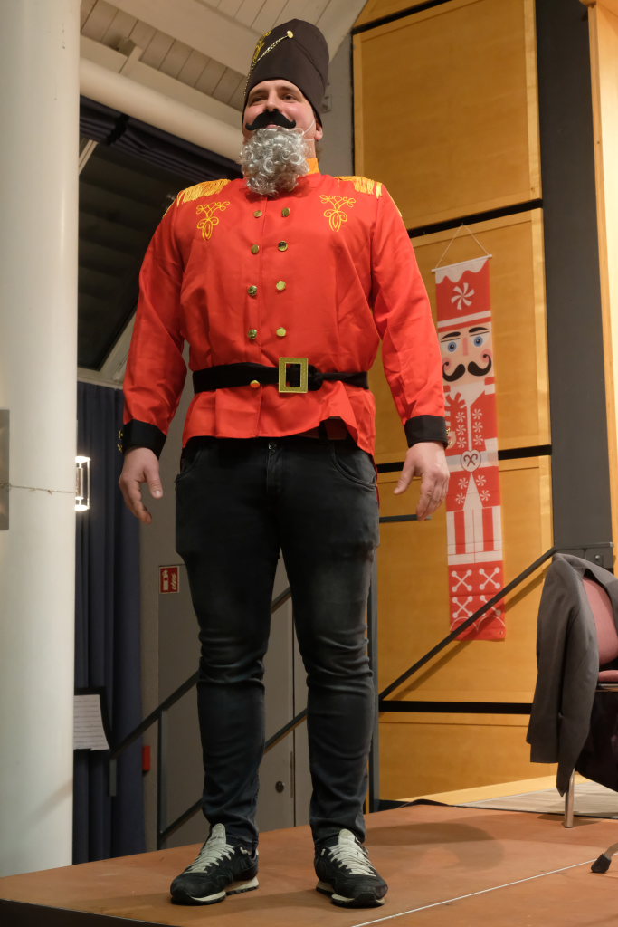 Schon an der Saaldeko war das musikalische Hauptthema des Konzertes zu erkennen. Und bevor das Konzert musikalisch eröffnet wurde, zeugte ein stattlicher, lebender Nußknacker auf der Bühne von der „The Nutcracker Fantasy“. Das Ballett, das Peter Tschaikovsky vor 130 Jahren geschrieben hatte. Dieses alle Register im höchsten Maß fordernde, vom japanischen Komponisten Yo Goto im Jahre 2010 für Blasmusik adaptierte Werk, bildete den rund 15-minütigen ersten Höhepunkt des Konzertes. Yo Goto hat aus den Melodien des berühmten Balletts „Der Nussknacker“ eine mitreißende Fantasie für Blasorchester kreiert. Liebliche Solo-Passagen und klangvolle Tutti-Abschnitte machen „The Nutcracker Fantasy“ zu einem imposanten Klangerlebnis für Musiker und Zuhörer.