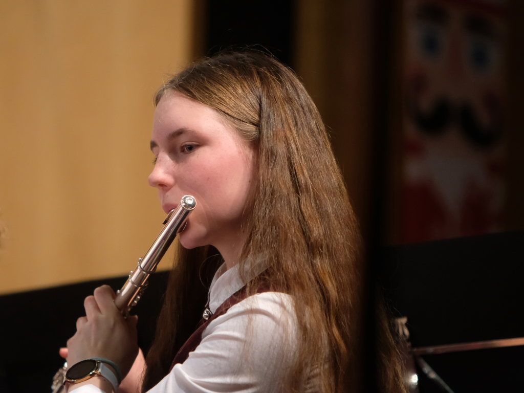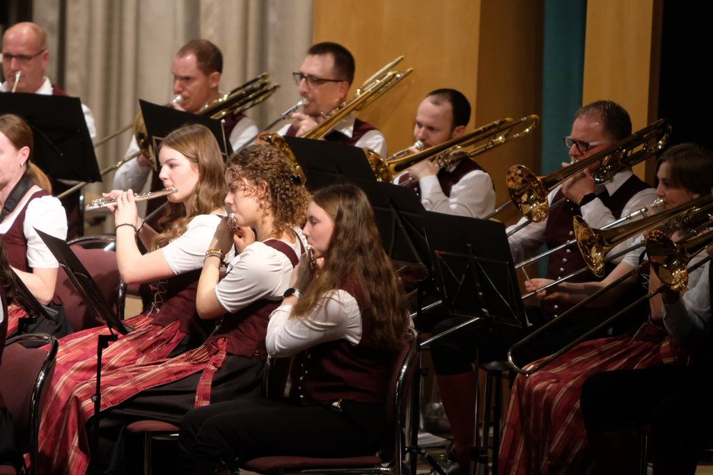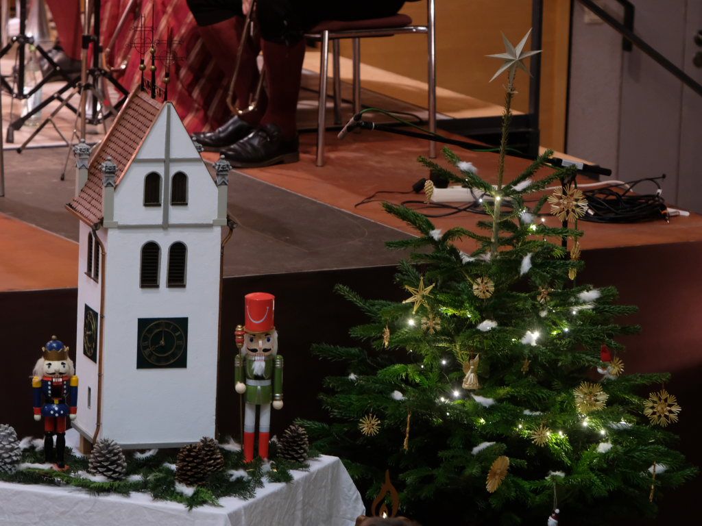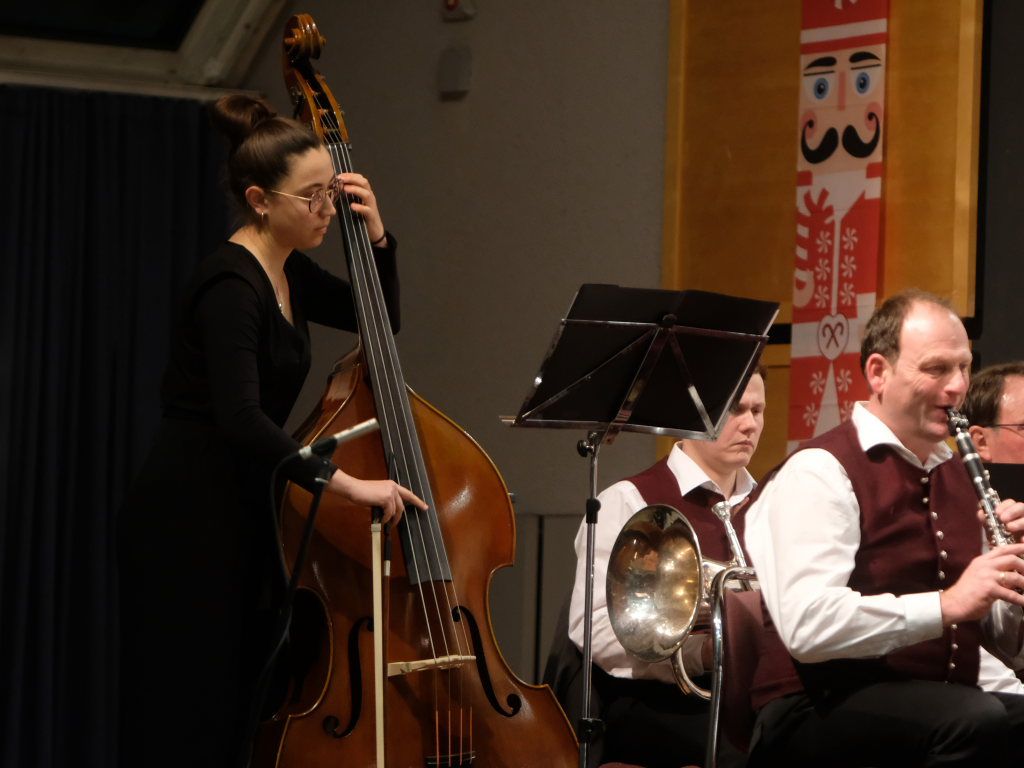 Schon an der Saaldeko war das musikalische Hauptthema des Konzertes zu erkennen. Und bevor das Konzert musikalisch eröffnet wurde, zeugte ein stattlicher, lebender Nußknacker auf der Bühne von der „The Nutcracker Fantasy“. Das Ballett, das Peter Tschaikovsky vor 130 Jahren geschrieben hatte. Dieses alle Register im höchsten Maß fordernde, vom japanischen Komponisten Yo Goto im Jahre 2010 für Blasmusik adaptierte Werk, bildete den rund 15-minütigen ersten Höhepunkt des Konzertes. Yo Goto hat aus den Melodien des berühmten Balletts „Der Nussknacker“ eine mitreißende Fantasie für Blasorchester kreiert. Liebliche Solo-Passagen und klangvolle Tutti-Abschnitte machen „The Nutcracker Fantasy“ zu einem imposanten Klangerlebnis für Musiker und Zuhörer.