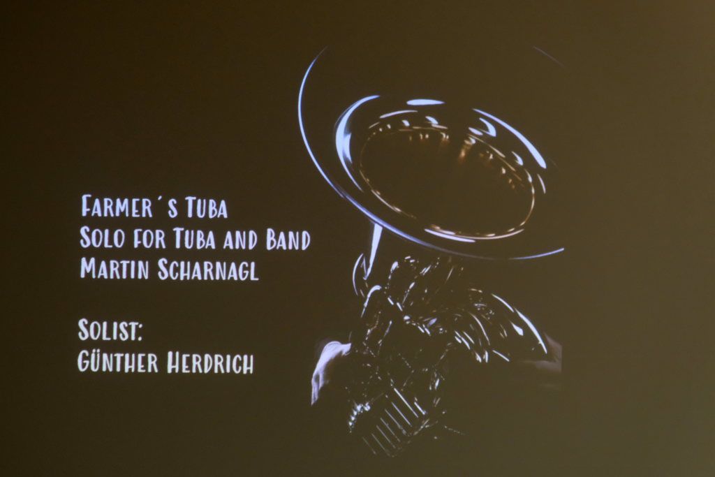 Der Komponist Martin Scharnagl hatte mit „Farmer’s Tuba“ im Jahre 2012 seinem Freund, Bandkollegen und Tubisten des VIERA BLECH, Josef Hofer dieses Solo regelrecht „auf den Leib geschrieben“. Nachdem sich „Farmer´s Tuba“ im Laufe der Zeit bei den zahlreichen Konzerten von VIERA BLECH zu einer Art „Markenzeichen“ entwickelte, entstand bei vielen Zuhörern der Wunsch nach einer Ausgabe für Solo-Tuba und Blasorchester. So entstand ein treibendes Stück im Funk-Stil, das dem Solisten – an diesem Abend Günther Herdrich – sowohl rhythmisch als auch technisch einiges abverlangte. Der Titel des Stücks kommt übrigens nicht von ungefähr: Josef Hofer ist nicht nur Musiker und Musikpädagoge, sondern auch Besitzer einer Landwirtschaft bei Kitzbühel.