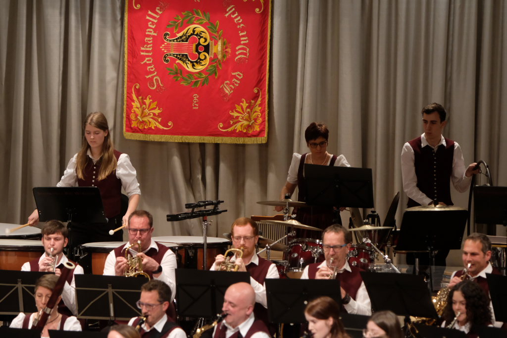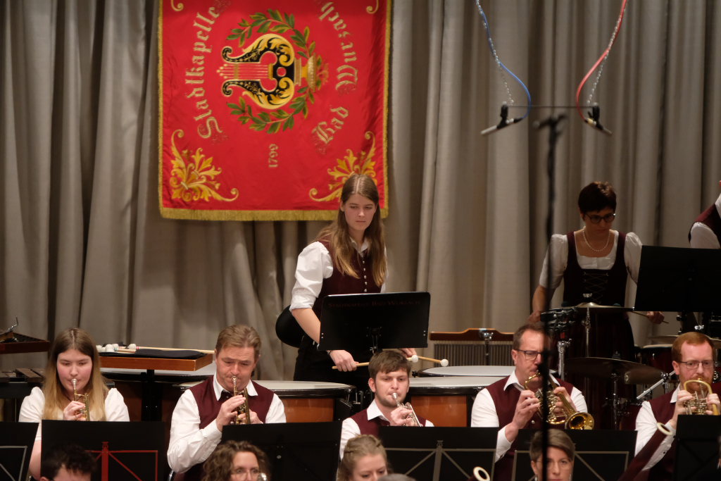 “L´Entracte” ist ein Zirkusmarsch aus der Feder des holländischen Komponisten Jan Bosveld. Mit dieser Zugabe verabschiedete sich die Stadtkapelle vom begeisterten, rund 350-köpfigen Publikum im Saal der Kurhaus-Kulturschmiede für dieses Jahr
