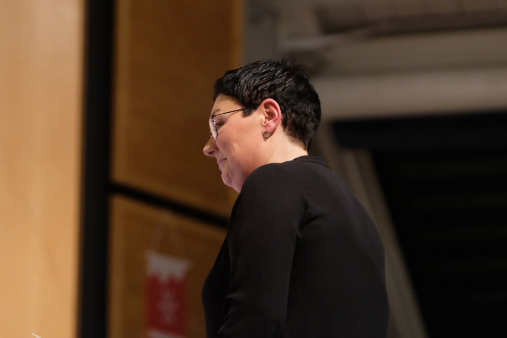 Wie in den letzten Jahren führte Andrea Mall mit großem Fachwissen durch das Programm, das die Stadtkapelle mit „Russian Christmas Music“ von Alfred Reed eröffnete. „Russian Christmas Music“ ist eines der absoluten Meisterwerke und hat entscheidend dazu beigetragen, dass Alfred Reed sich als einer der wichtigsten Komponisten von zeitgenössischer Musik für Sinfonisches Blasorchester etabliert hat. Es kombiniert alle Elemente der Sinfonischen Blasmusik zu einem überwältigendes Klanggemälde. Der Komponist schrieb das Stück im Jahr 1944.