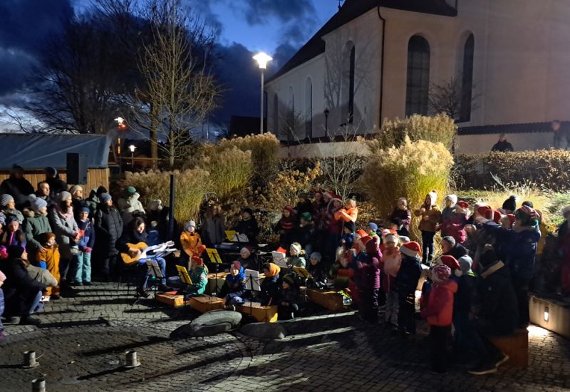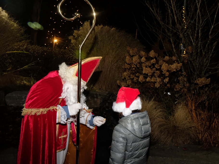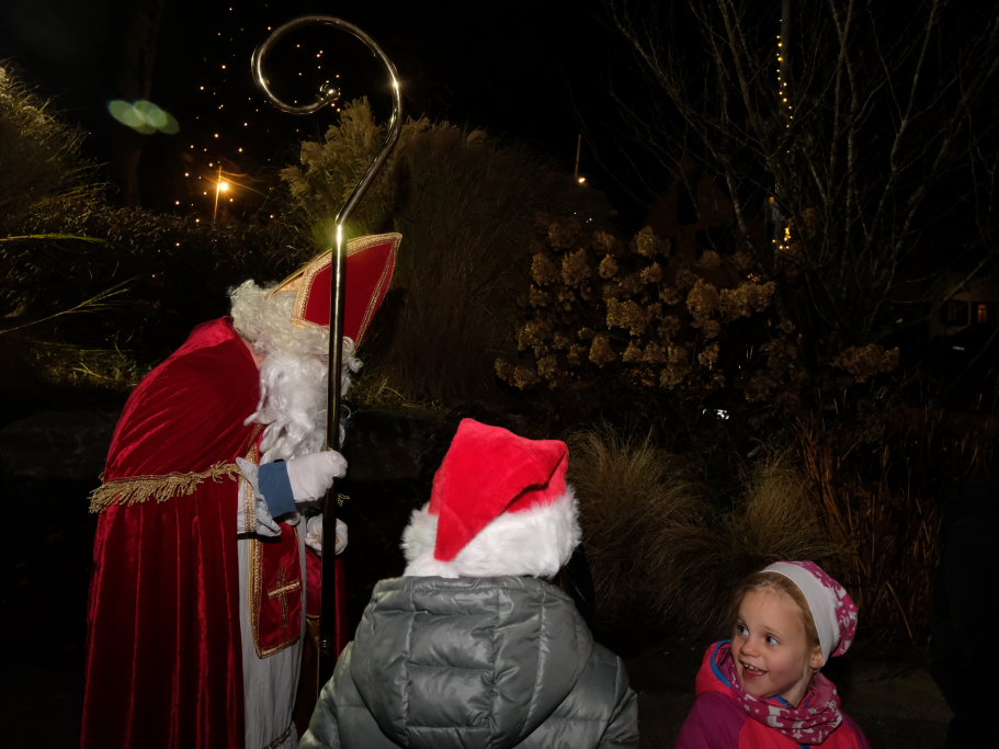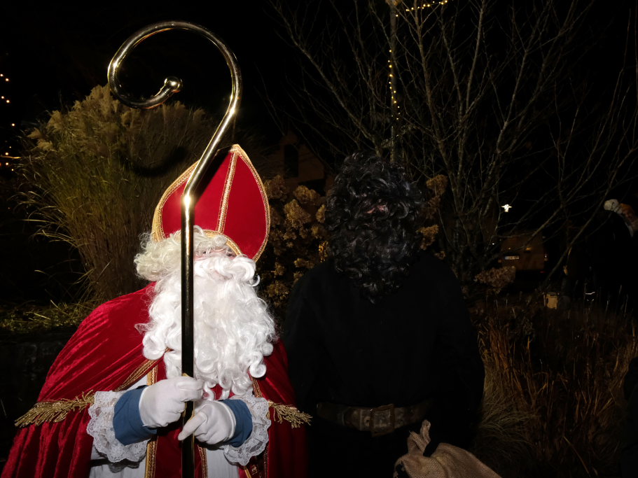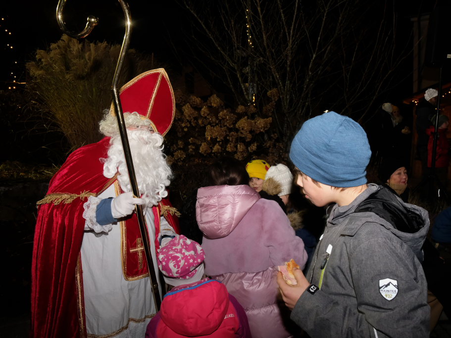 Freuen konnte sich auch Andre Radke, Leiter des Arnacher Bildungshauses, hatten sich für den Schulchor, der die Besucher mit weihnachtlichen Weisen unterhielt, auch jetzt wieder sehr viele Kinder gemeldet. Nicht fehlen durfte natürlich am Nikolaustag der Nikolaus mit seinem Knecht Rupprecht. Dieser hatte wieder viele Geschenke mitgebracht, die er gerne unter den Kindern verteilte. Auch die Jungmusikanten des Musikvereines trugen ihren Teil zur musikalischen Unterhaltung der Besucher bei, die sich im Schatten der Pfarrkirche und des beleuchteten Christbaumes drängten.