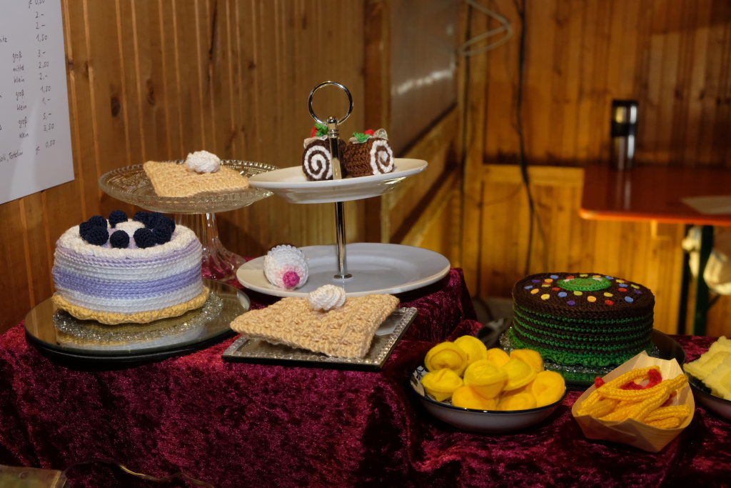 Neben den zahlreichen Essensständen der Feuerwehrmänner, gab es aber auch einiges an Weihnachtlichem Kunsthandwerk aus heimischer Produktion sprich von Mitgliedern von Kirchenchor oder Kirchengemeinderat zu sehen und zu kaufen. Die Nachbarschaftshilfe Arnach bot wieder Selbstgestricktes wie z.B. warme Socken oder Handschuhe feil.