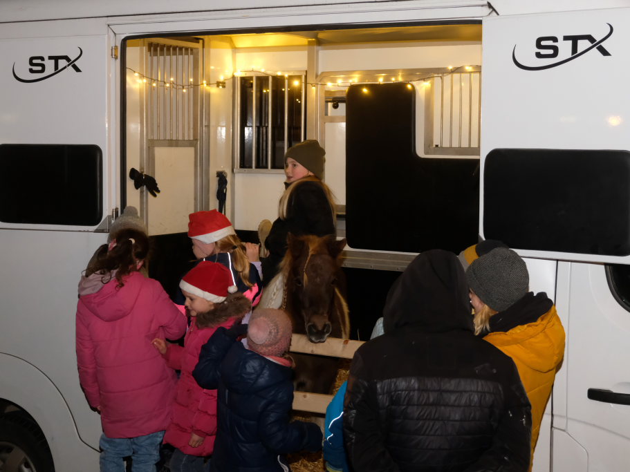 Und in direkter Nachbarschaft zum Christbaumverkauf gab es für die kleinen Besucher einen Streichelzoo mit Kaninchen und Pony. In der beheizten Fahrzeughalle der Feuerwehr sorgte nebenan die Jugendfeuerwehr für eine sehr gute Kinderbetreuung der Kleinen, so dass die Eltern sich unbeschwert den lukullischen Genüssen des Marktes widmen konnten. Quasi fürs Dessert sorgten die Schülergruppen des Bildungshauses, die mit ihren Körben gefüllt mit Tüten voll mit selbstgemachten Schoko-Crossies durch die Besuchermenge wieselten.