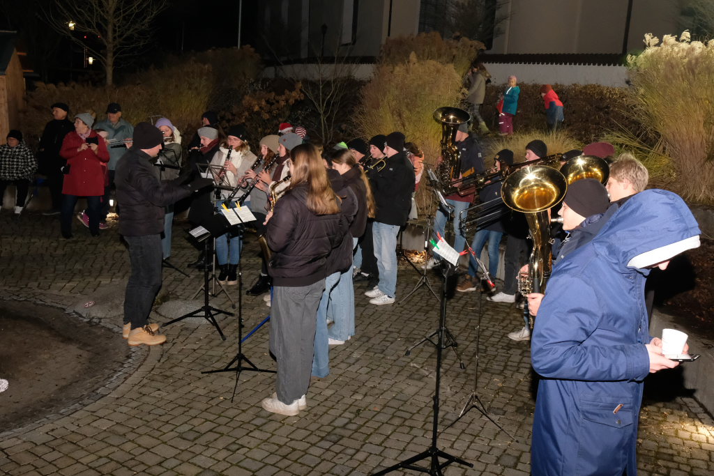Rasch bildeten sich bei den Versorgungsständen lange Schlangen – natürlich waren heiße Getränke wie Glühwein oder Punsch die Favoriten. Und so manche „Rote“ ging neben anderen Schmankerln über die Budentheken. Für die standesgemäße Verpflegung sorgten neben der Feuerwehr auch die Klasse 3 des Bildungshauses und der Förderverein der Schule. Für flüssigen Nachschub sorgte die Feuerwehr mit Glühwein, Punsch und Co., ebenso aber auch mit Grillwurst und anderen Spezialitäten dafür, dass keiner das Festgelände hungrig verlassen musste. Wem der Sinn eher nach Kaltgetränken stand, brauchte sich um die Temperatur seines Getränkes nicht sorgen, lag die Lufttemperatur doch bei knapp über dem Gefrierpunkt, die damit sicherlich auch ihren Teil zur wunderbaren Adventsstimmung beitrug.