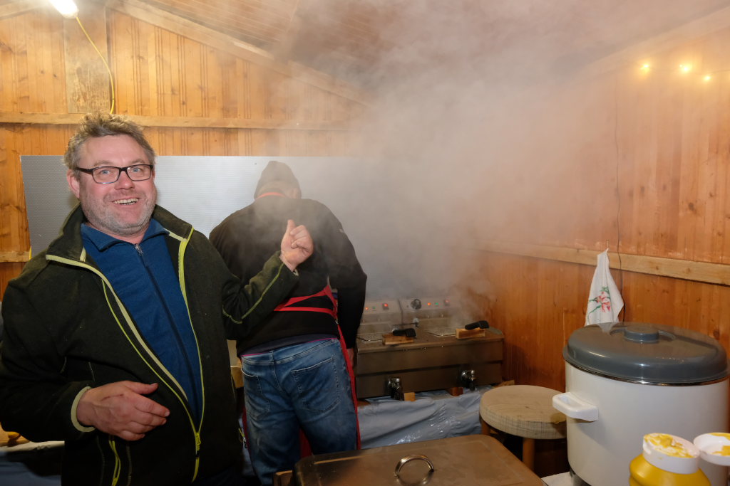 Ortsvorsteher Mike Raunecker fiel ein letztes Mal die Ehre zu, die vielen Gäste aus Arnach, aber auch aus der näheren und weiteren Umgebung, willkommen zu heißen. In seiner Begrüßung wies er auf das reichhaltige Programm hin, das an diesem Abend geboten wurde. „Ab 19.00 Uhr können die Eltern aufatmen. Sie können ihre Kleinen in der beheizten Fahrzeughalle zur Kinderbetreuung abgeben. Vergessen sie aber nicht, ihre Kinder wieder abzuholen“, erklärte er mit typisch Rauneker´schem Humor. Und ließ die alljährliche Gefahrenmeldung folgen: „Seit Jahren stehen Schafe auf dem Dorfplatz, achten sie auf die Tiere sowie auf die Anlage rund um den Dorfbrunnen.“ Währenddessen konnte sich dessen designierter Nachfolger Manfred Braun noch als „normaler“ Gast zwischen den Hütten bewegen.