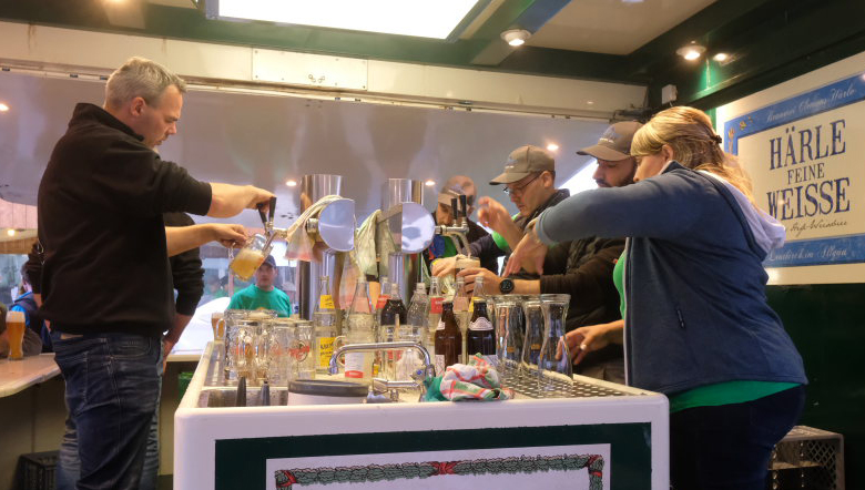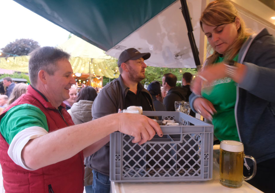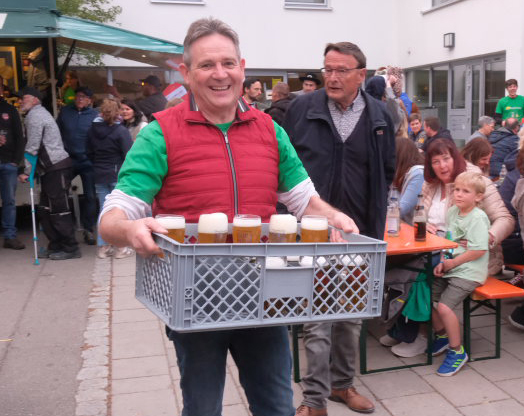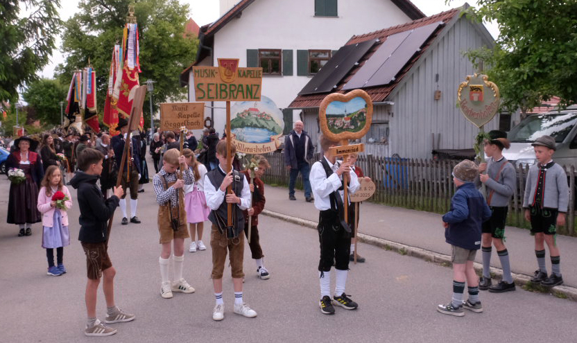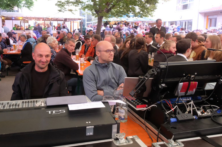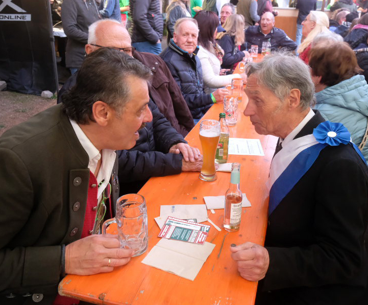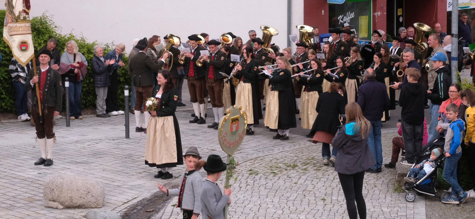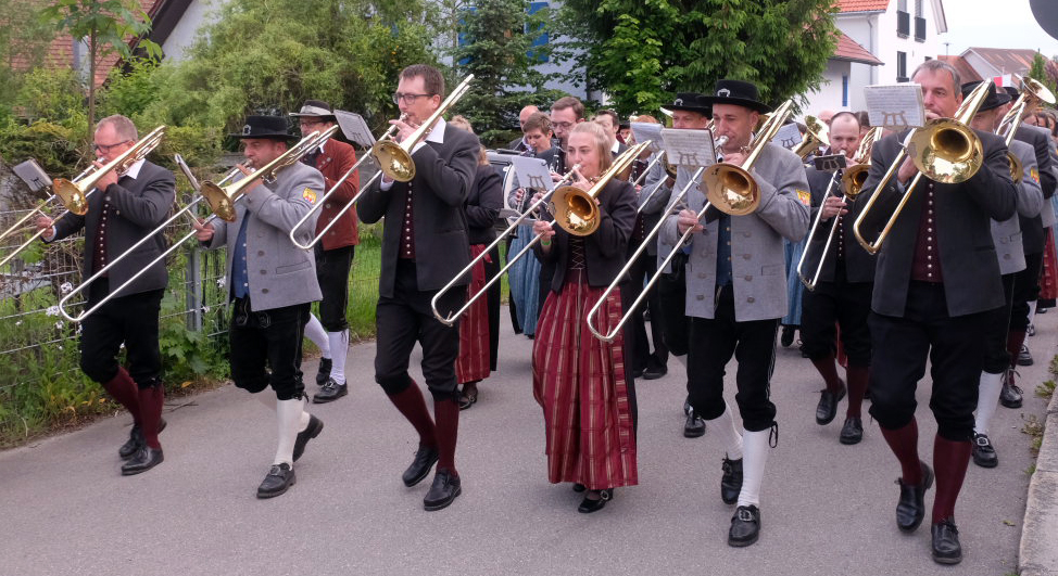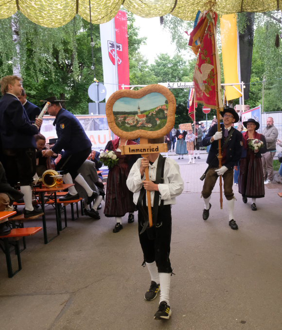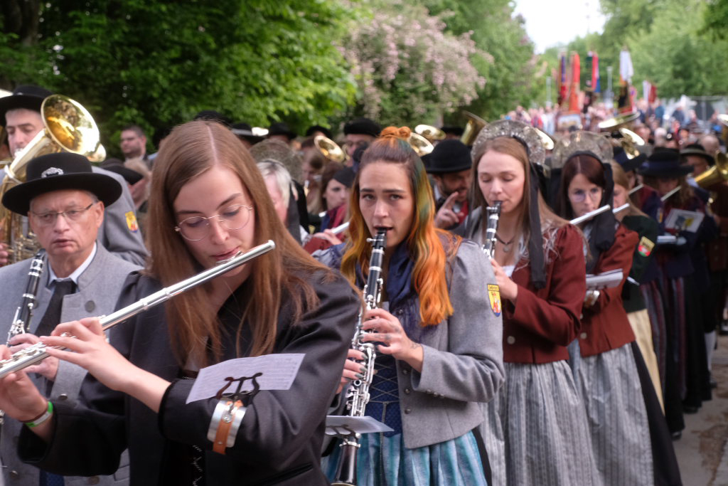 Nicht jedoch die „Arbeit“ für die Musiker der Kapellen. Denn Steffie Jöchle & Co. hatten noch ein Experiment mit ihnen vor: Sie durften unter dem Dirigat von Berthold Hiemer noch als eine der größten Kapellen der Region im Marschtritt, „Mein Heimatland“ spielend, zum Festgelände ziehen, was auch wunderbar funktionierte; ausgerichtet hatte den Gesamt-Zug Armin Hummel.