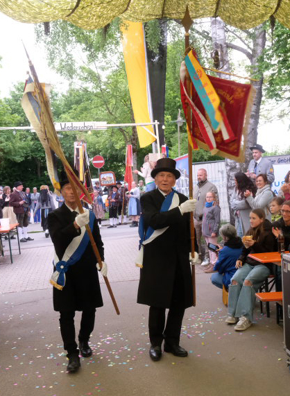 Die Täfelesträger an der Spitze des großen Musikantenzuges auf dem Weg zum Festplatz an der Schule.