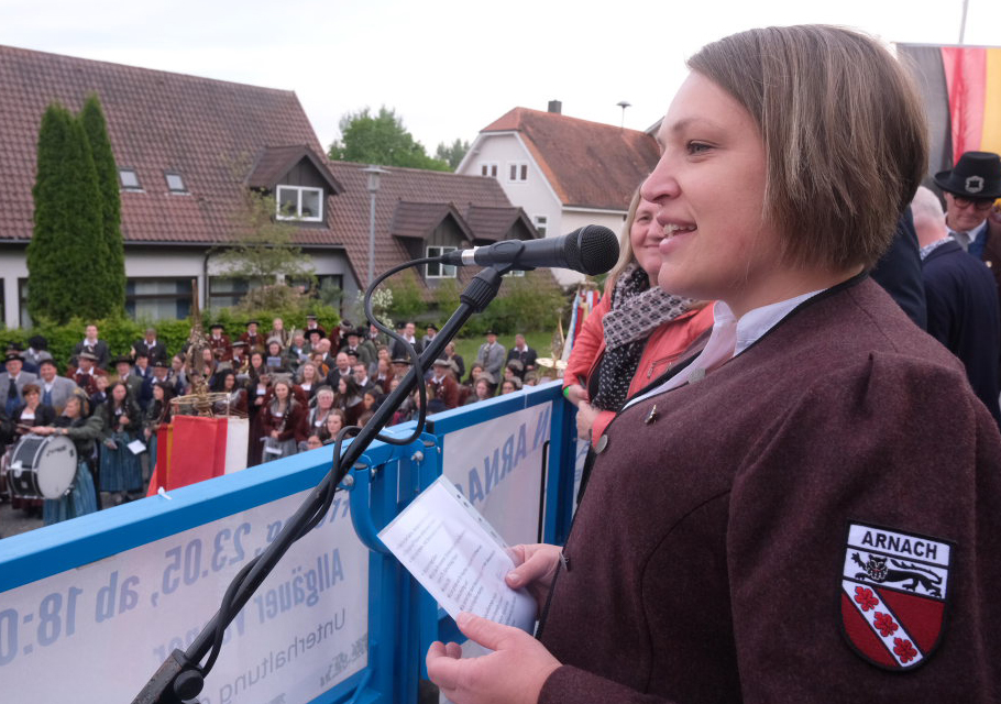 MVA-Vorstandssprecherin Stefanie Jöchle bei der Begrüßung auf dem Dorfplatz.