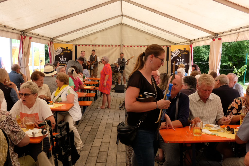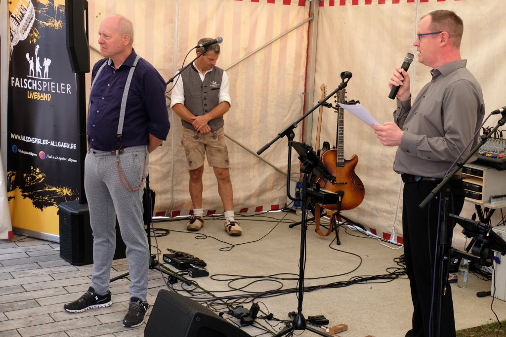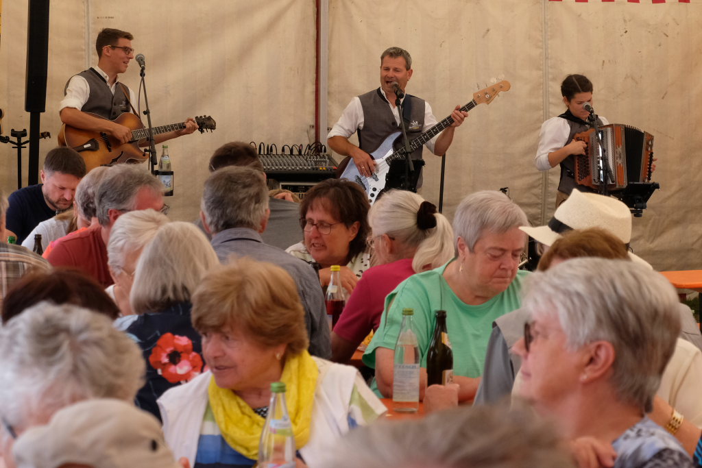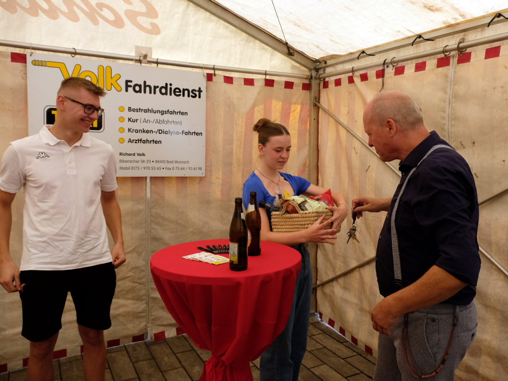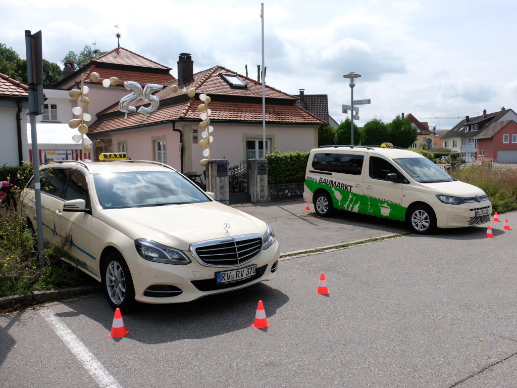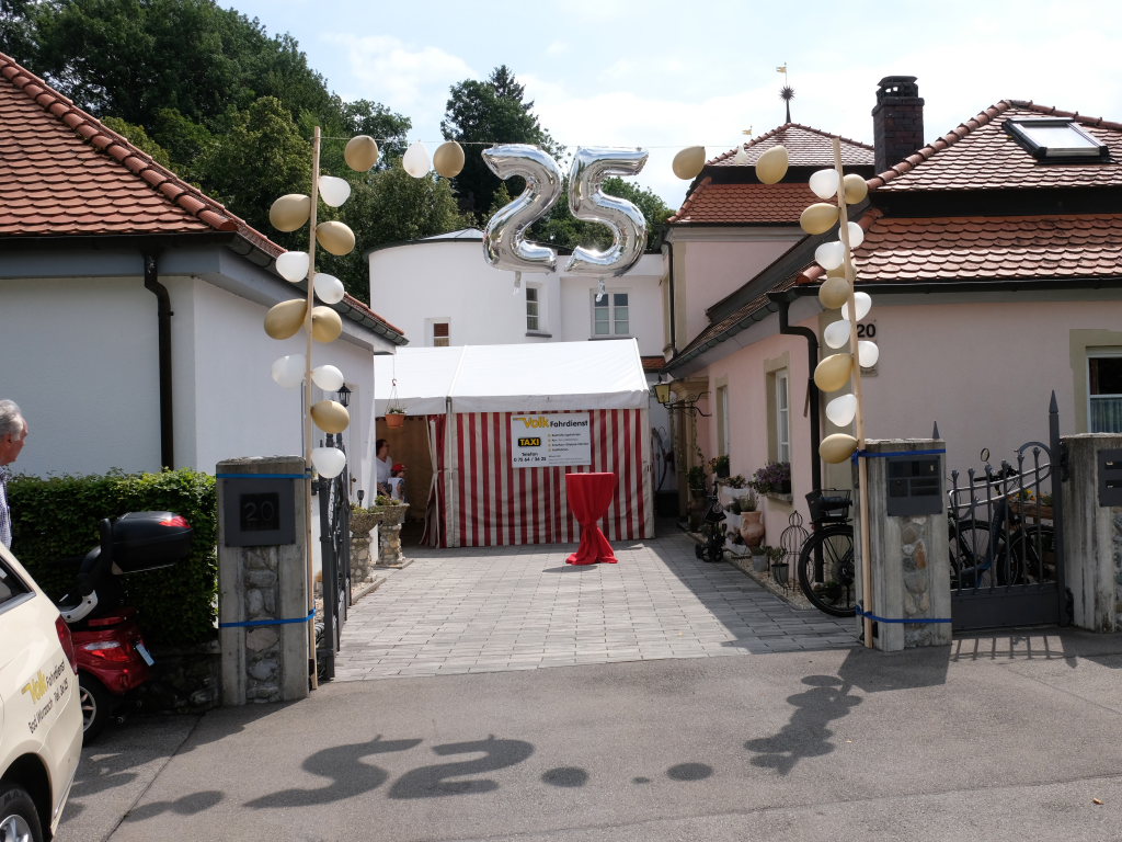 Das Wetter spielte an diesem Festtag mit, die Besucher, darunter auch die Taxi-Kollegen aus Leutkirch und Bad Waldsee – strömten in Scharen auf das Festgelände, wo bereits am Eingangstor mit einer überdimensionalen 25 auf das Jubiläum hingewiesen wurde. Die „Baadgoischdr“ versorgten die Besucher mit gutem Essen und anschließend mit Kaffee und Kuchen. Bei einer Tombola gab es viele wertvolle Preise zu gewinnen, für die musikalische Unterhaltung sorgte die Band die Falschspieler aus Röthenbach bei Lindenberg.