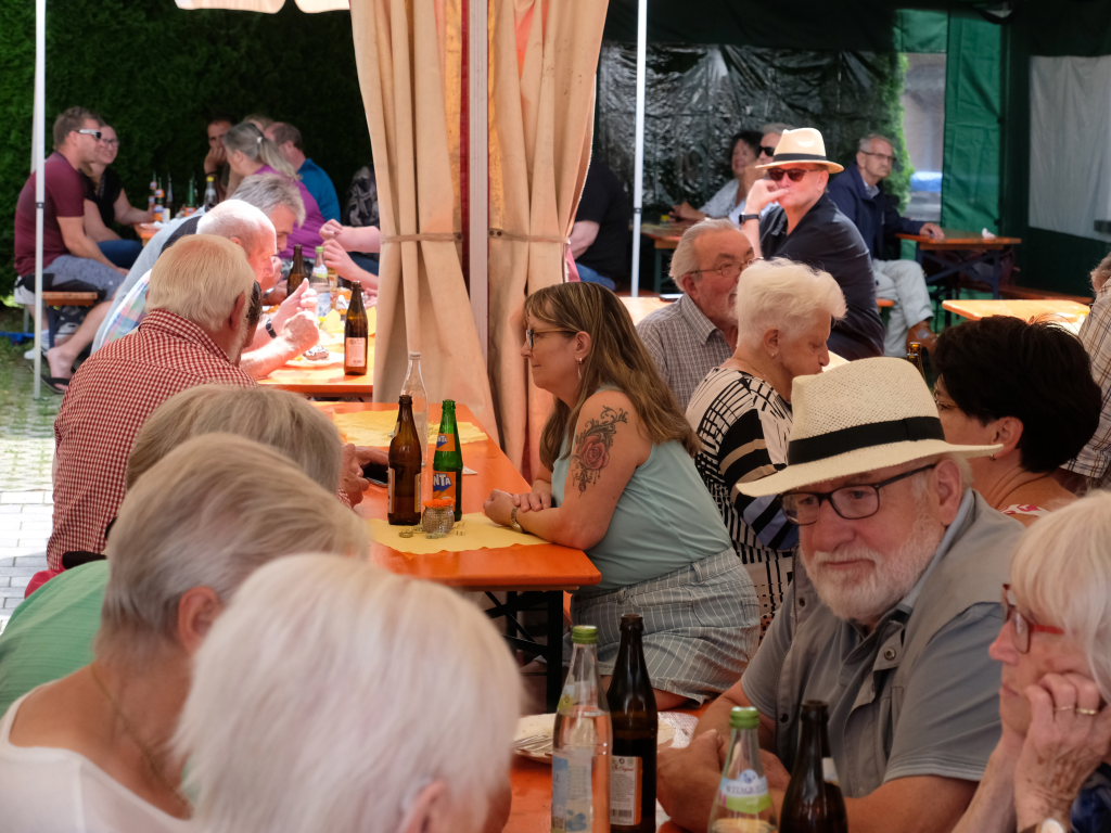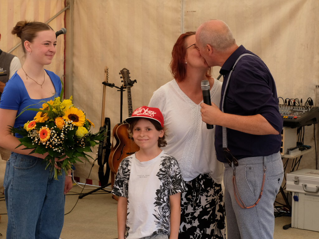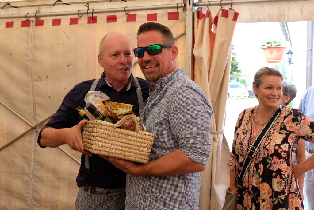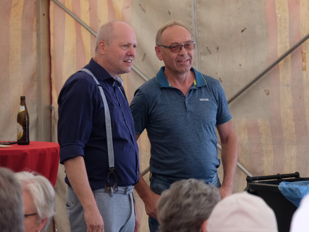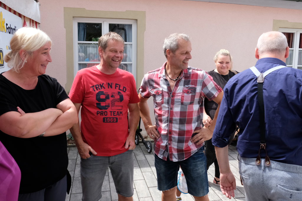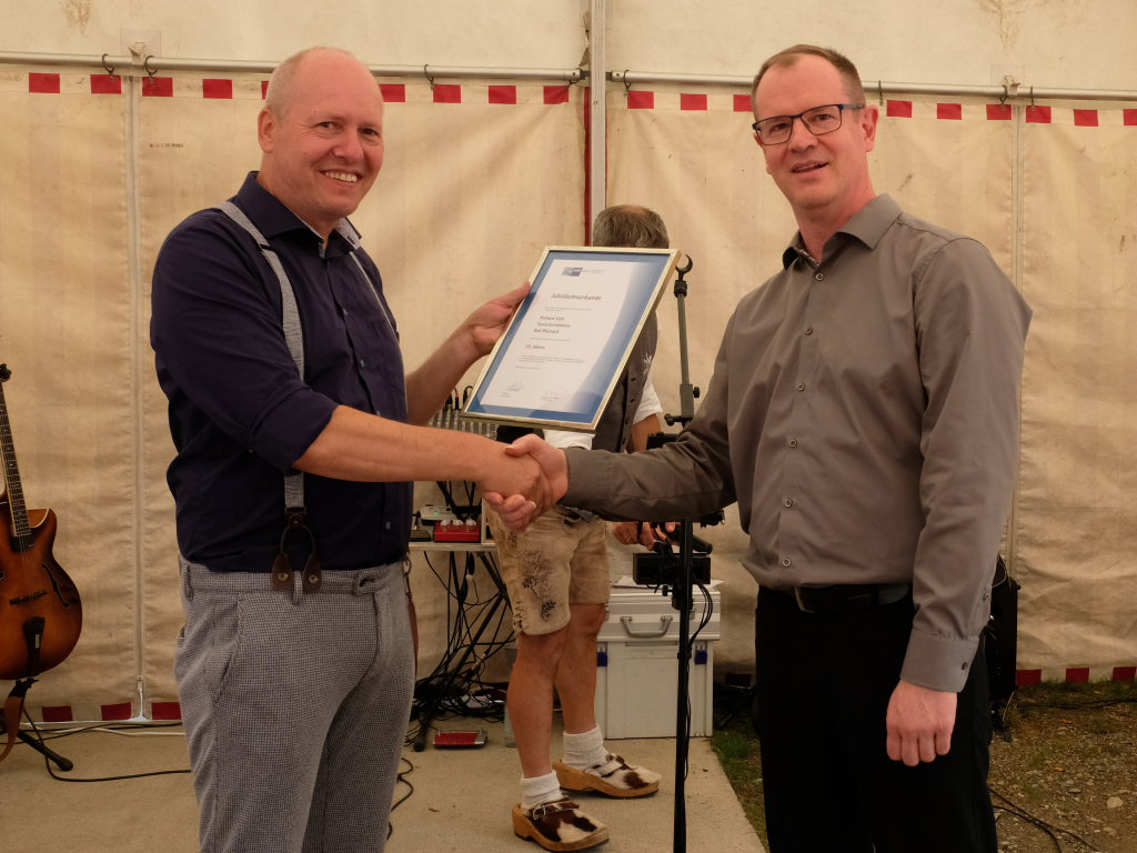 Das Wetter spielte an diesem Festtag mit, die Besucher, darunter auch die Taxi-Kollegen aus Leutkirch und Bad Waldsee – strömten in Scharen auf das Festgelände, wo bereits am Eingangstor mit einer überdimensionalen 25 auf das Jubiläum hingewiesen wurde. Die „Baadgoischdr“ versorgten die Besucher mit gutem Essen und anschließend mit Kaffee und Kuchen. Bei einer Tombola gab es viele wertvolle Preise zu gewinnen, für die musikalische Unterhaltung sorgte die Band die Falschspieler aus Röthenbach bei Lindenberg.