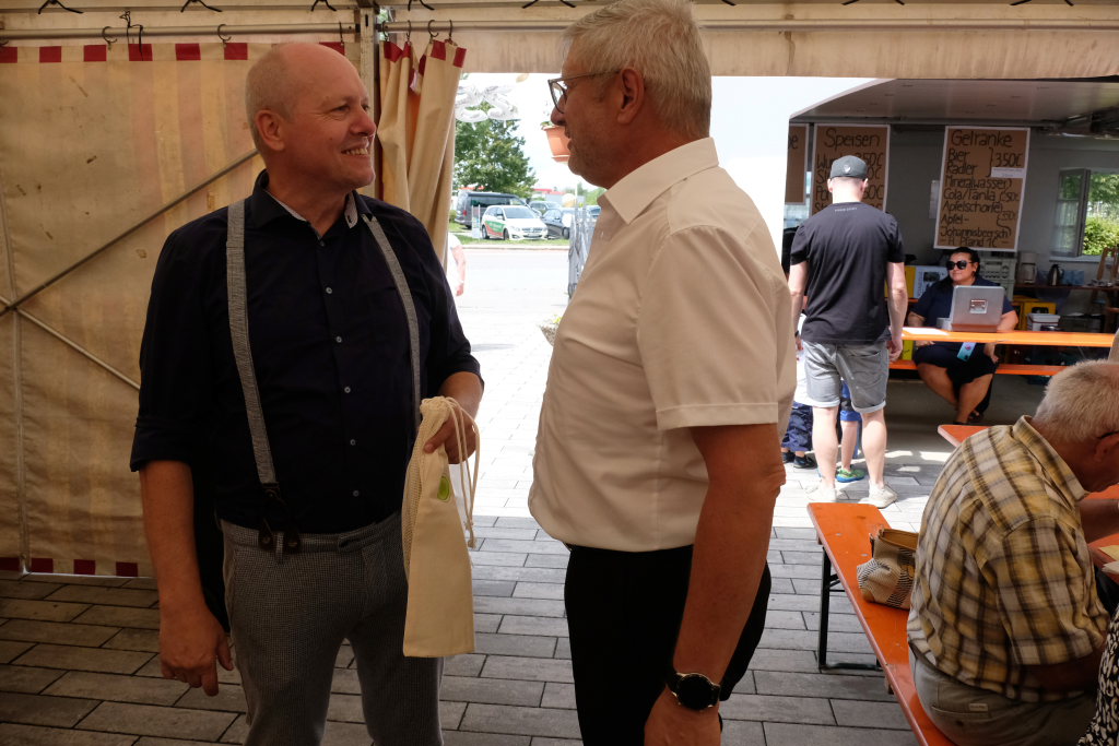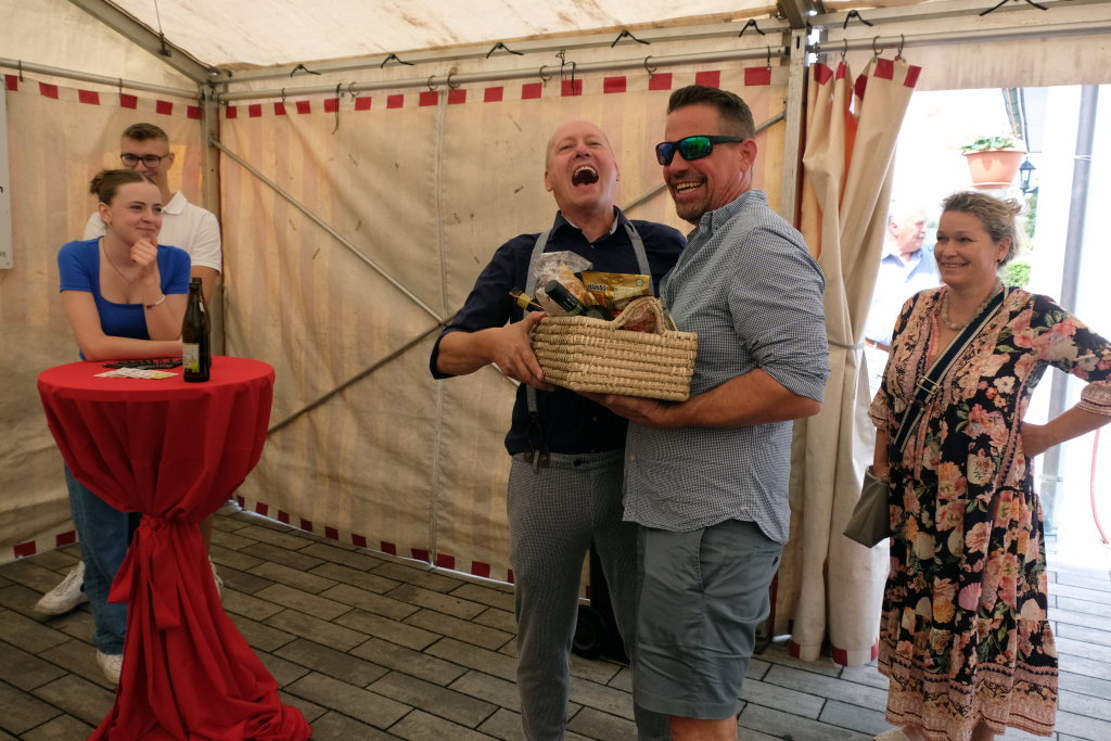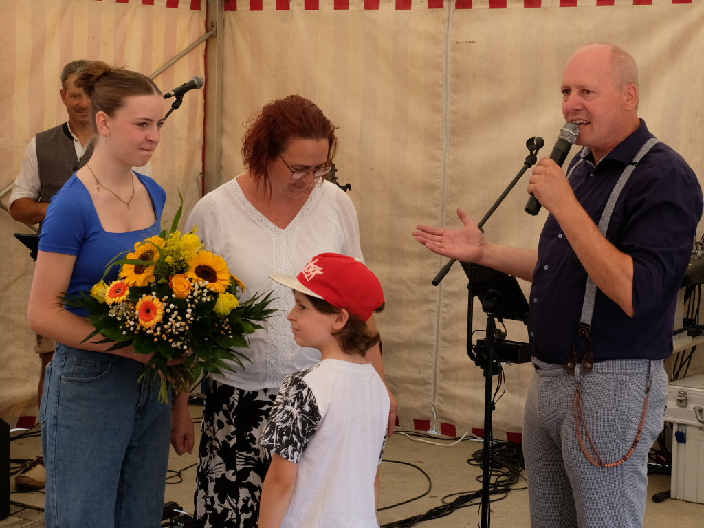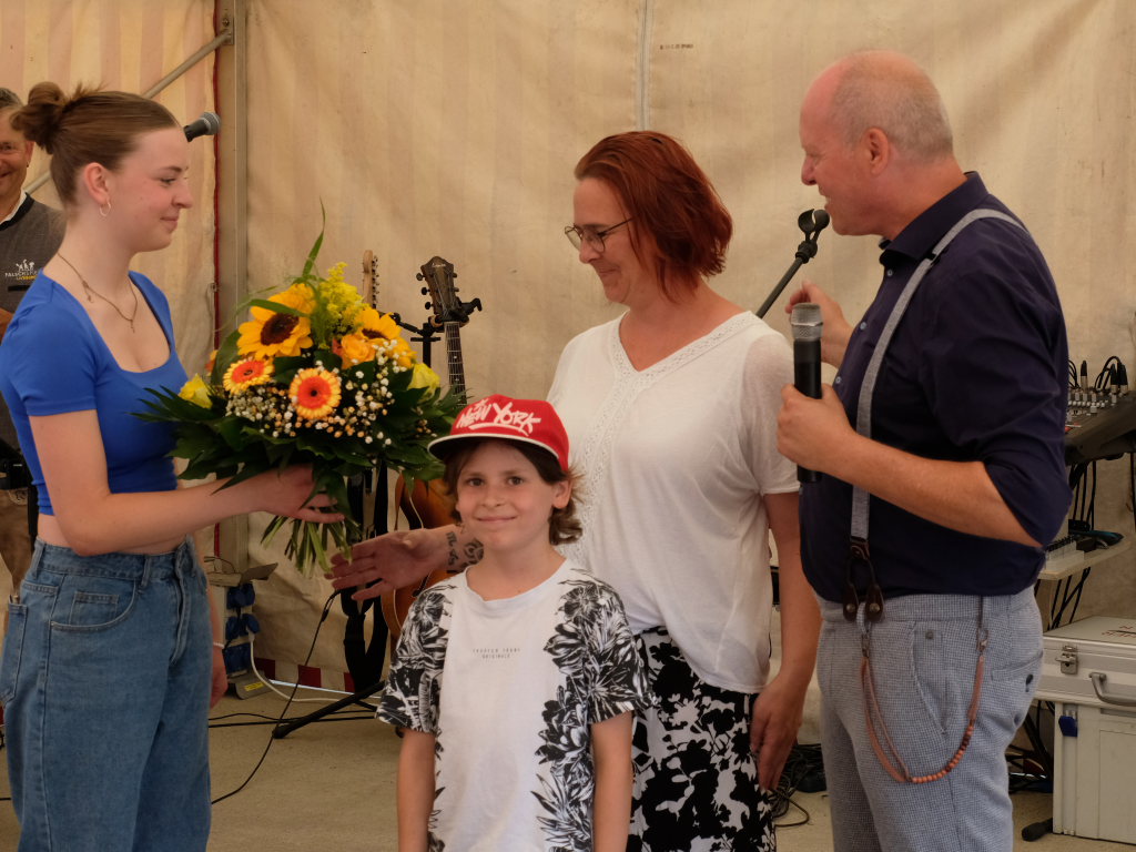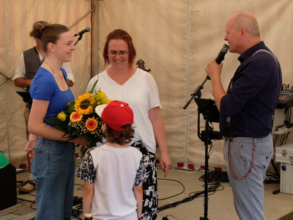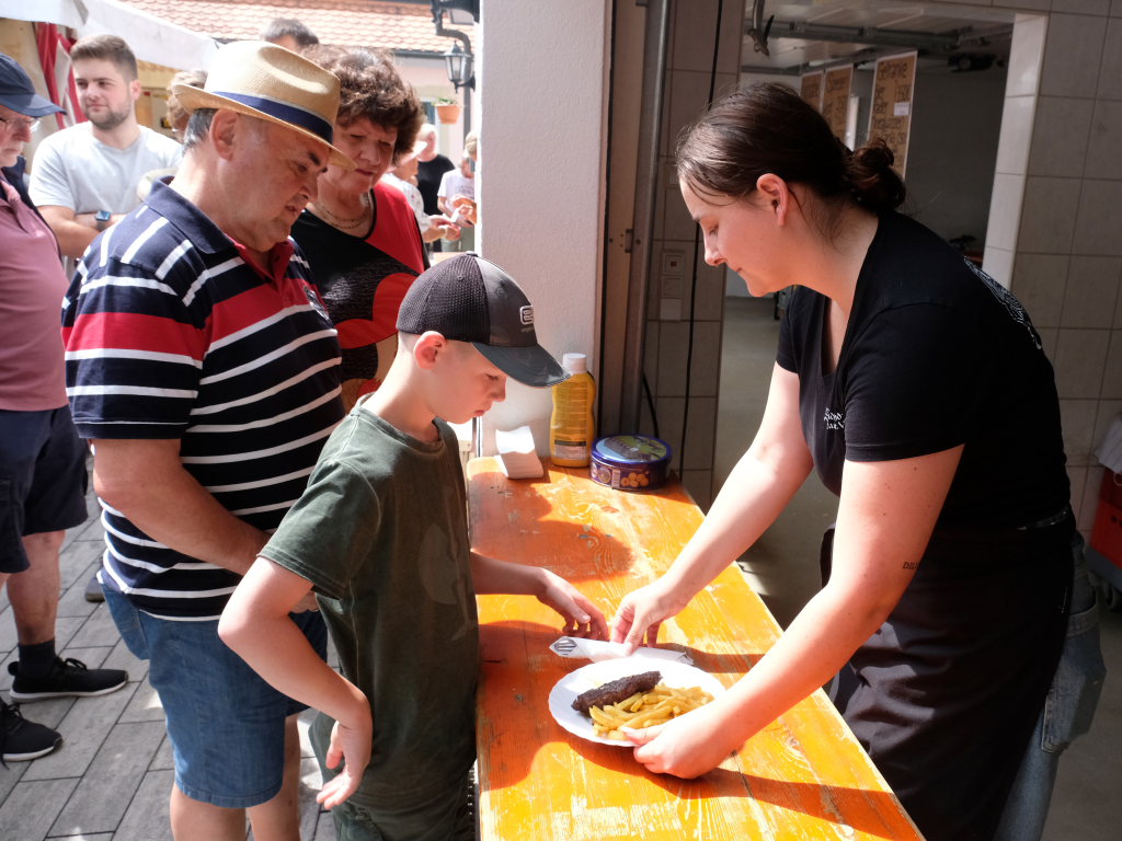 Das Wetter spielte an diesem Festtag mit, die Besucher, darunter auch die Taxi-Kollegen aus Leutkirch und Bad Waldsee – strömten in Scharen auf das Festgelände, wo bereits am Eingangstor mit einer überdimensionalen 25 auf das Jubiläum hingewiesen wurde. Die „Baadgoischdr“ versorgten die Besucher mit gutem Essen und anschließend mit Kaffee und Kuchen. Bei einer Tombola gab es viele wertvolle Preise zu gewinnen, für die musikalische Unterhaltung sorgte die Band die Falschspieler aus Röthenbach bei Lindenberg.