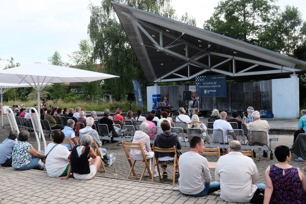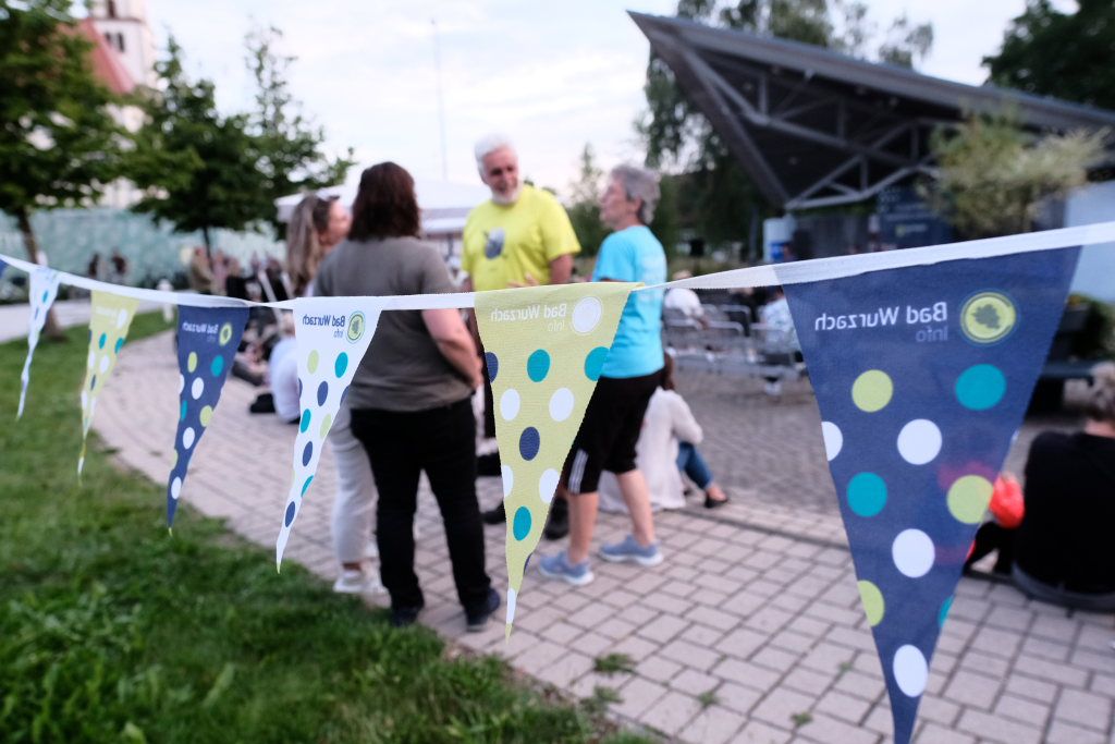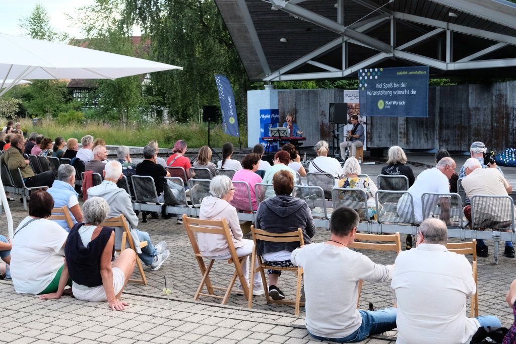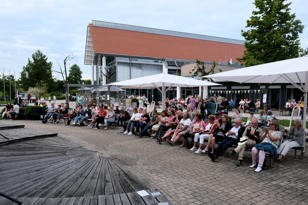 Anna Holzhauser und Florian Holzhauser gelang es an diesem lauen Sommerabend, rund um den Konzert-Pavillon eine wunderbar entspannte Ferien- und Feier-Atmosphäre zu schaffen. Dass die Sommerabendkonzerte, die von den Damen der Bad Wurzach Info organisiert werden und die erst im vergangenen Sommer ihre Premiere feierten, sich schon nach so kurzer Zeit etabliert haben, zeigte der sehr gute Publikumszuspruch an diesem Abend. Rund 250 Zuhörer standen und saßen dicht an dicht und sorgten dafür, dass an den Verpflegungsstellen der Kurhaus-Genossenschaft sich gelegentlich kleine Schlangen bildeten.