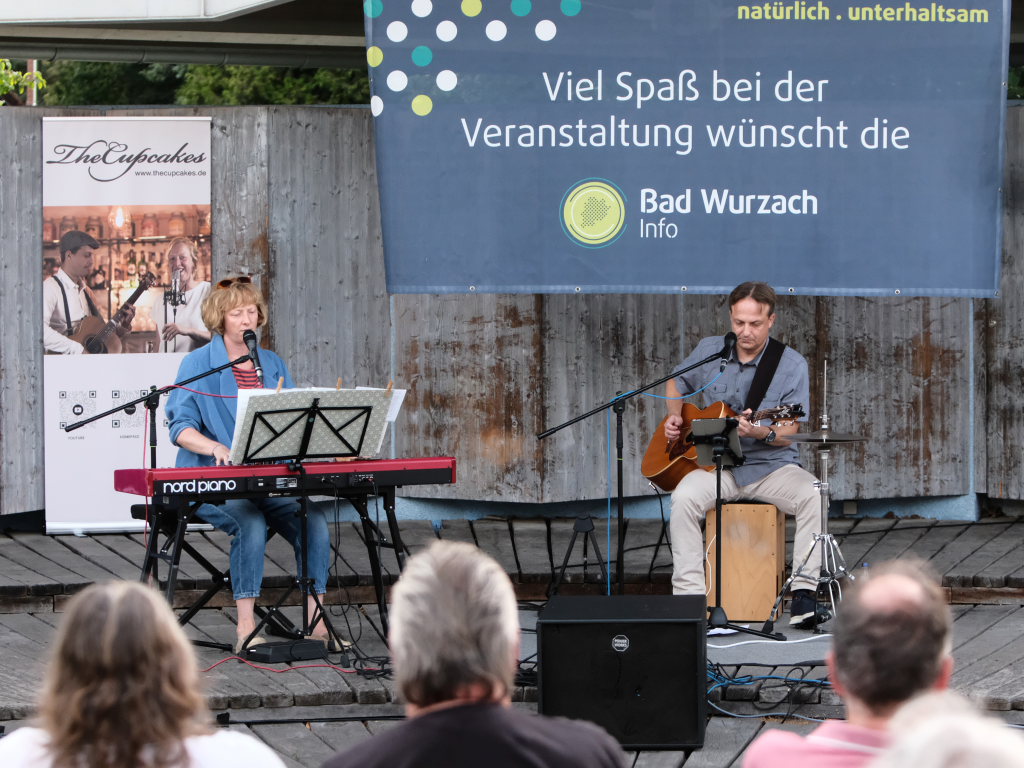 Bad Wurzach – Nach Jakob Longfield & Band aus Tübingen, der Mitte Juni die diesjährige Sommerabendkonzertreihe eröffnete, folgte nun mit „The Cupcakes“ ein wunderbares Geschwister-Duo, das mit Akustik-Covern aus verschiedenen Genres das Publikum zu begeistern wusste.
