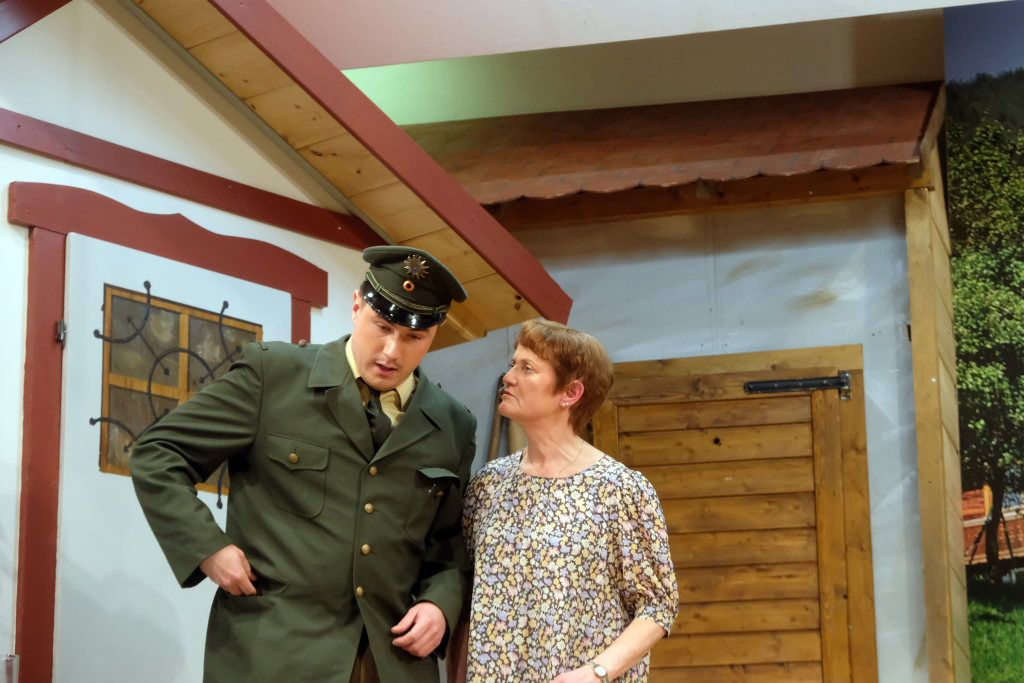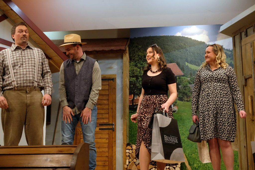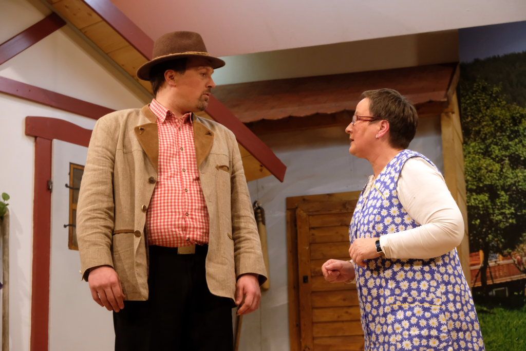 Es ist in diesem Stück des Bauerntheaters Ziegelbach einiges geboten: Verwicklungen, Missverständnisse und – kriminalistisch gesehen – falsche Fährten. Auch das Lokalkolorit mit kleinen Seitenhieben auf die Nachbarorte kommt nicht zu kurz: „Viele ziehen nach Haidgau, um die schöne Aussicht auf Ziegelbach zu genießen.“ Dazu ein spielfreudiges, gut vorbereitetes Ensemble mit gut besetzten Rollen, in das sich Verena Kiebler in der Rolle der Sabine als einziger „Neuling“ hervorragend integriert hat. Und ein begeisterungsfähiges Publikum – unter anderen waren die Feuerwehr-Senioren aus Bad Wurzach, die Plätzlerzunft aus Weingarten und die Blutreiter aus Ravensburg mit größeren Gruppen da – sorgten für beste Stimmung im Dorfstadel bei dieser zweiten Aufführung in dieser Spielsaison.