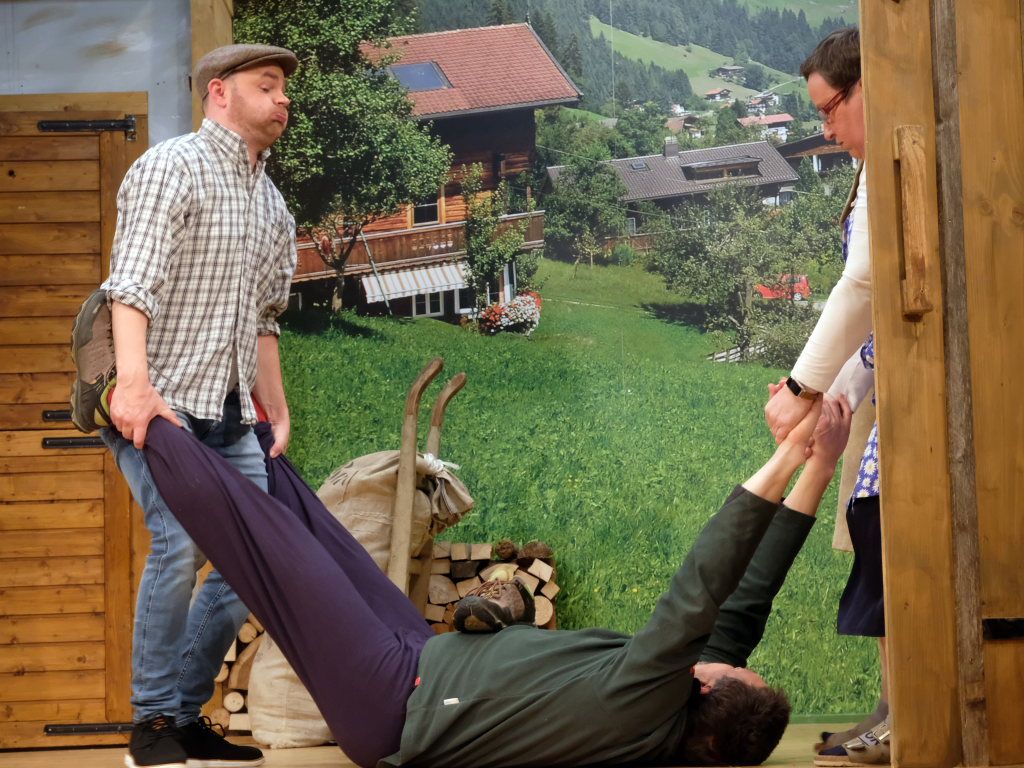 In den Fängen der Damen: Alfons (Andy Glaser) mit Agathe (Linda Böhler; links) und Sabine (Verena Kiebler).