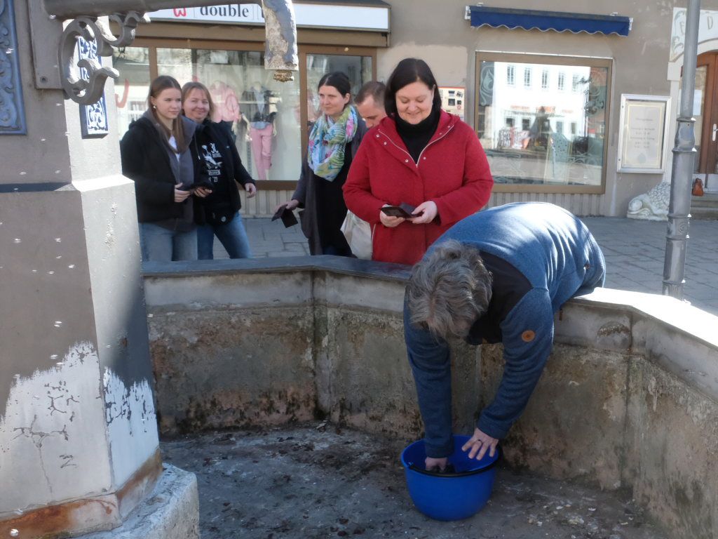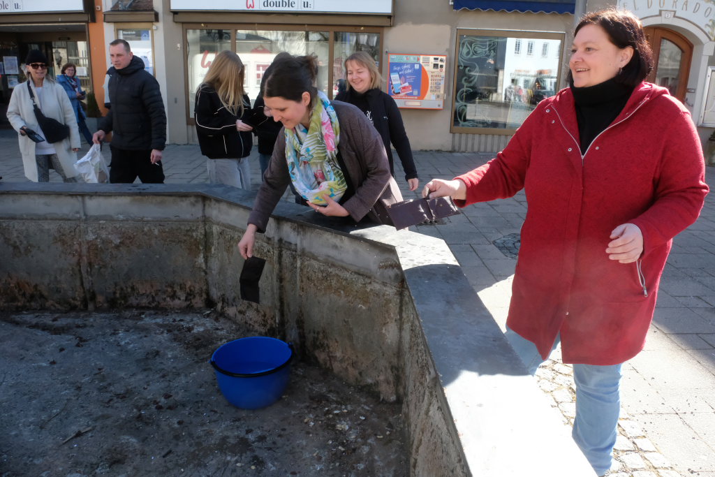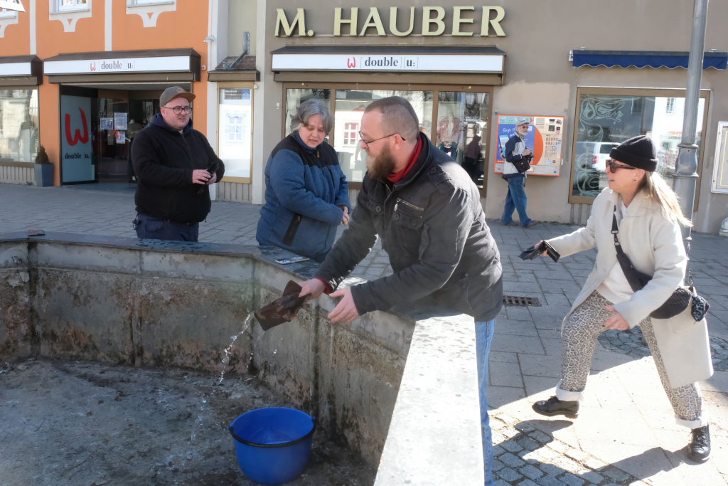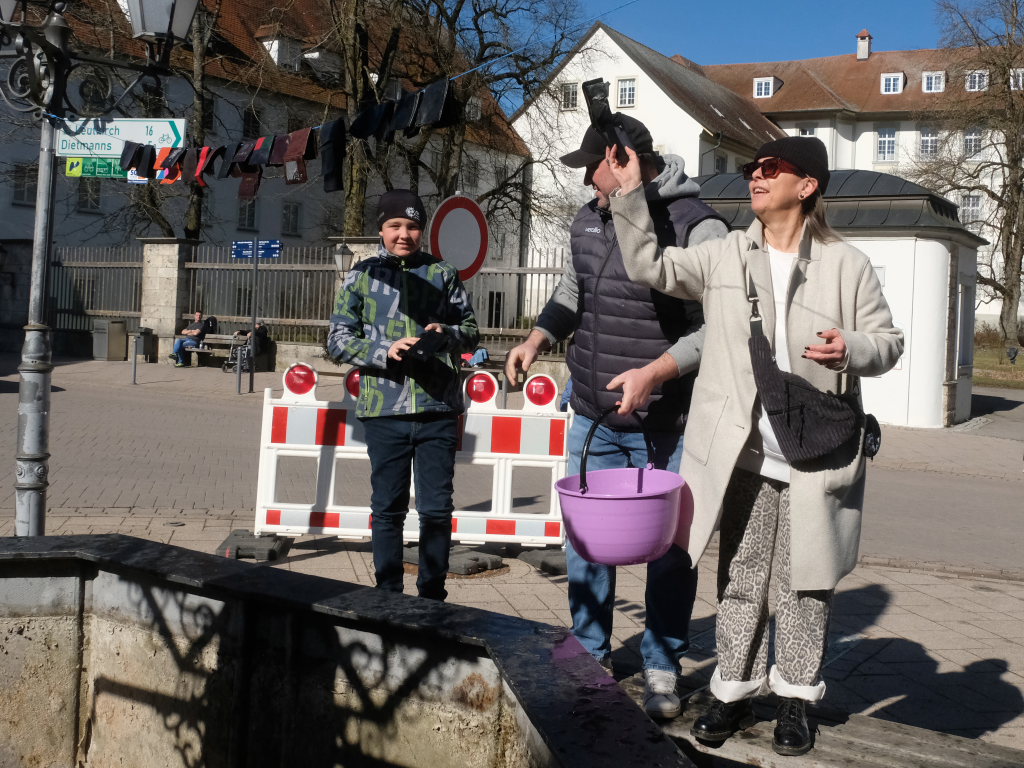 Bad Wurzach – Die Geldbeutelwäsche bildet am Aschermittwoch den Abschluss der Wurzacher Fasnet. Die Geldbeutel sind leer und die Gelegenheit wird genutzt, sie zu waschen und um – einem alten Glauben zufolge – neues Geld in die Beutel zu spülen.