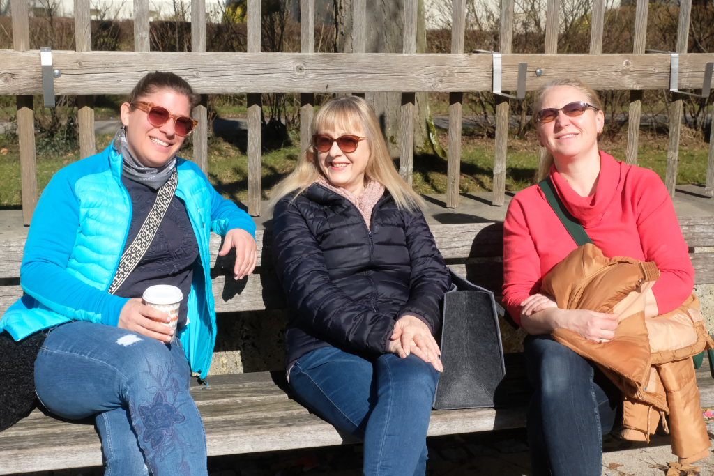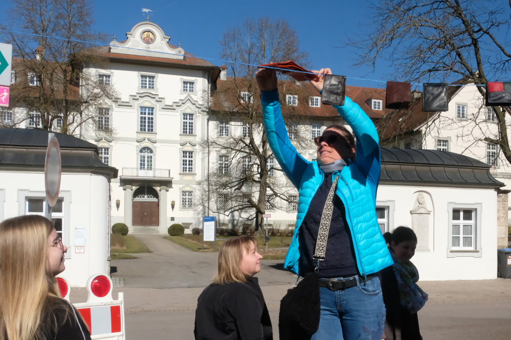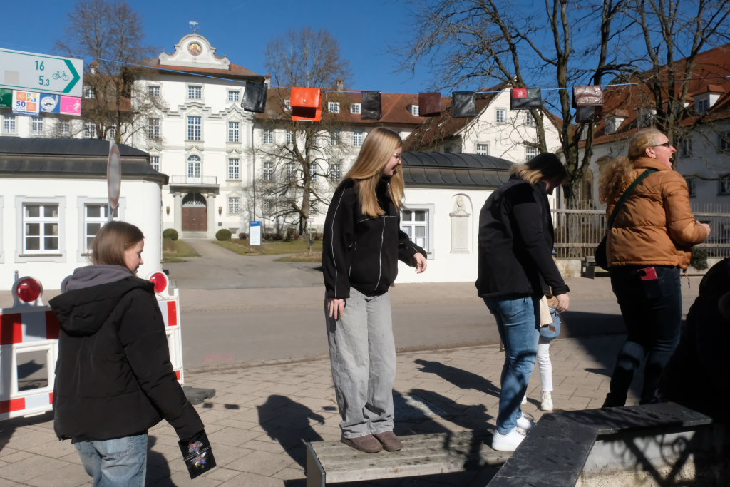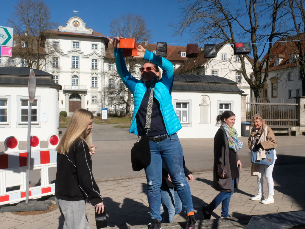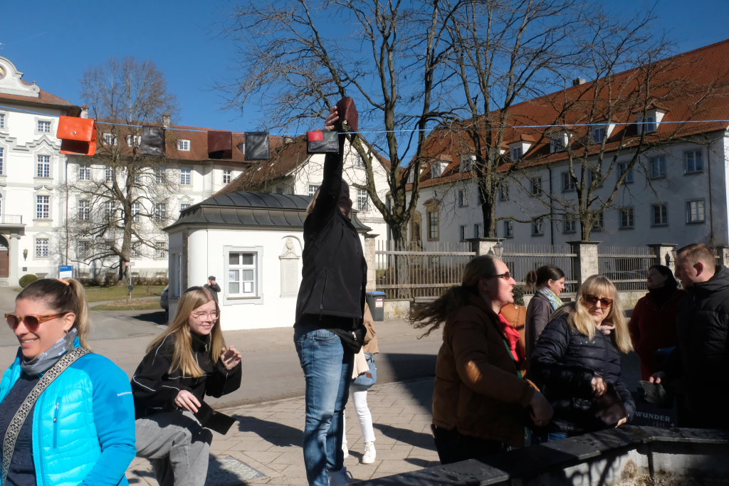 Nach dem das Werk vollendet war und man sich der Leine, ohne Gefahr zu laufen, nass zu werden, für ein Erinnerungsfoto nähern konnte, stellten sich auch einige Zaungäste dazu, um ein stimmungsvolles Foto mit dem Schloss im Hintergrund zu machen.