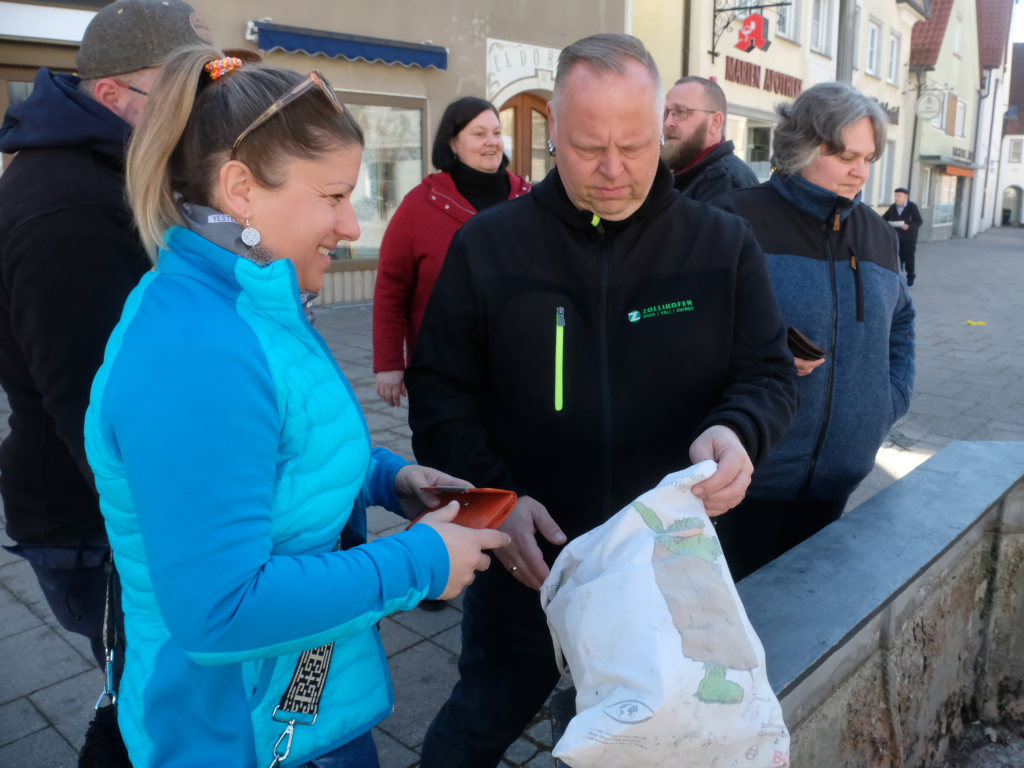 Nach der Geldbeutelwäsche folgte nun der letzte Arbeitseinsatz der diesjährigen Fasnetssaison. Die Geldbeutelwäsche ist nämlich nur die spaßmachende und motivierende Kür: Der Hauptgrund, warum man sich am Stadtbrunnen traf, waren die Einlagerungsarbeiten der Fasnetsutensilien. Was in diesem Jahr um einiges flotter ging, weil nach dem Abbau des Disco-Zelt am gestrigen Dienstagvormittag noch Zeit und Personal-Kapazitäten vorhanden waren, gleich die Fasnetsbändel vom Umzugsweg abzuhängen, was ansonsten erst nach der Geldbeutelwäsche erfolgt.