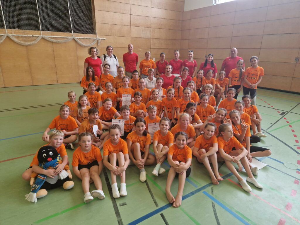 Bad Wurzach – 39 Turnerinnen und Turner der TSG Bad Wurzach nahmen am vergangenen Samstag unter enormer Hitze beim diesjährigen Kinderturnfest in Wilhelmsdorf erfolgreich teil. Das diesjährige Kinderturnfest wurde in Wilhelmsdorf ausgetragen. Trotz 30 Grad Sommerhitze haben rund 296 Kinder aus unterschiedlichen Vereinen Ihr Können gezeigt.