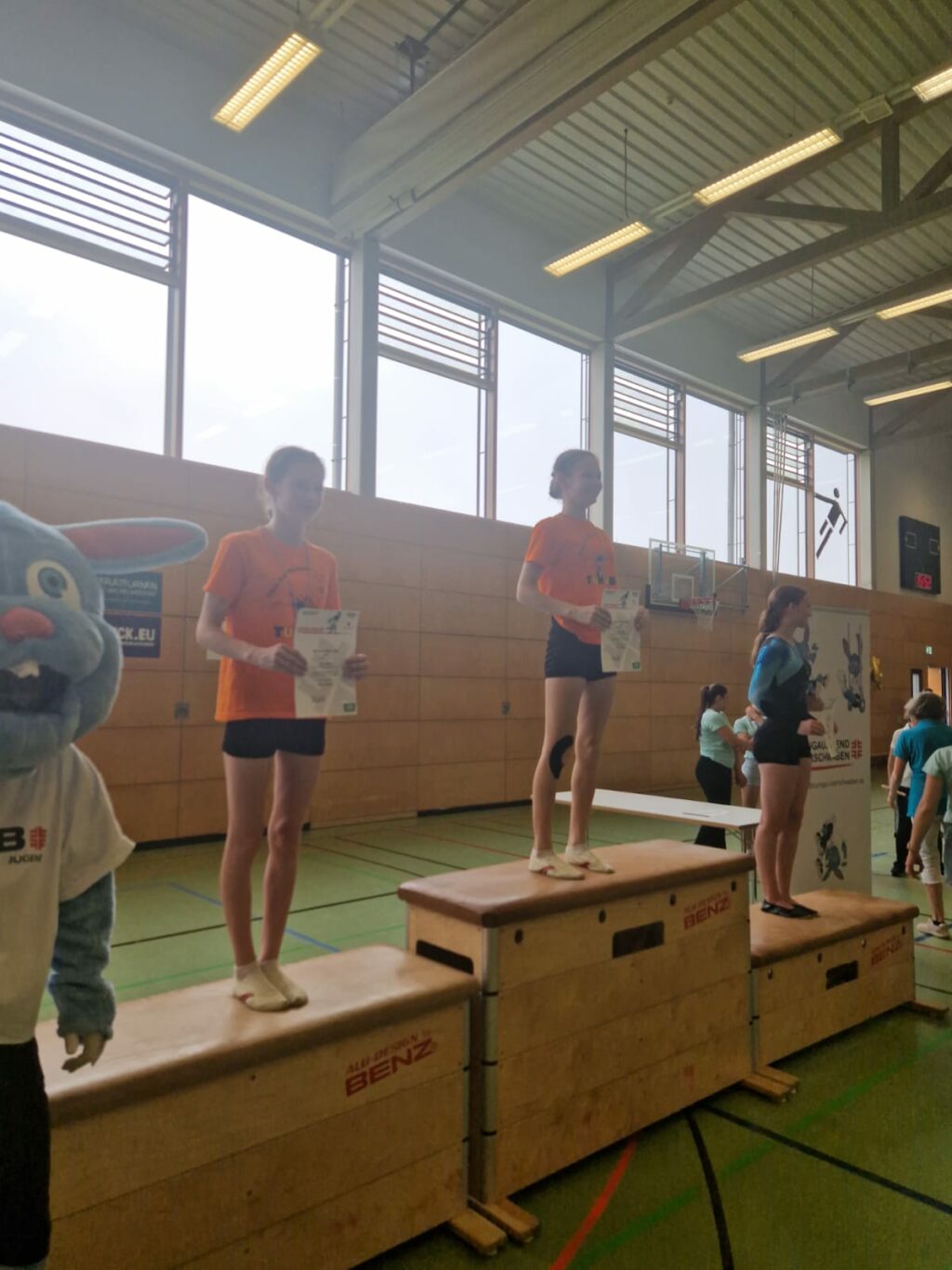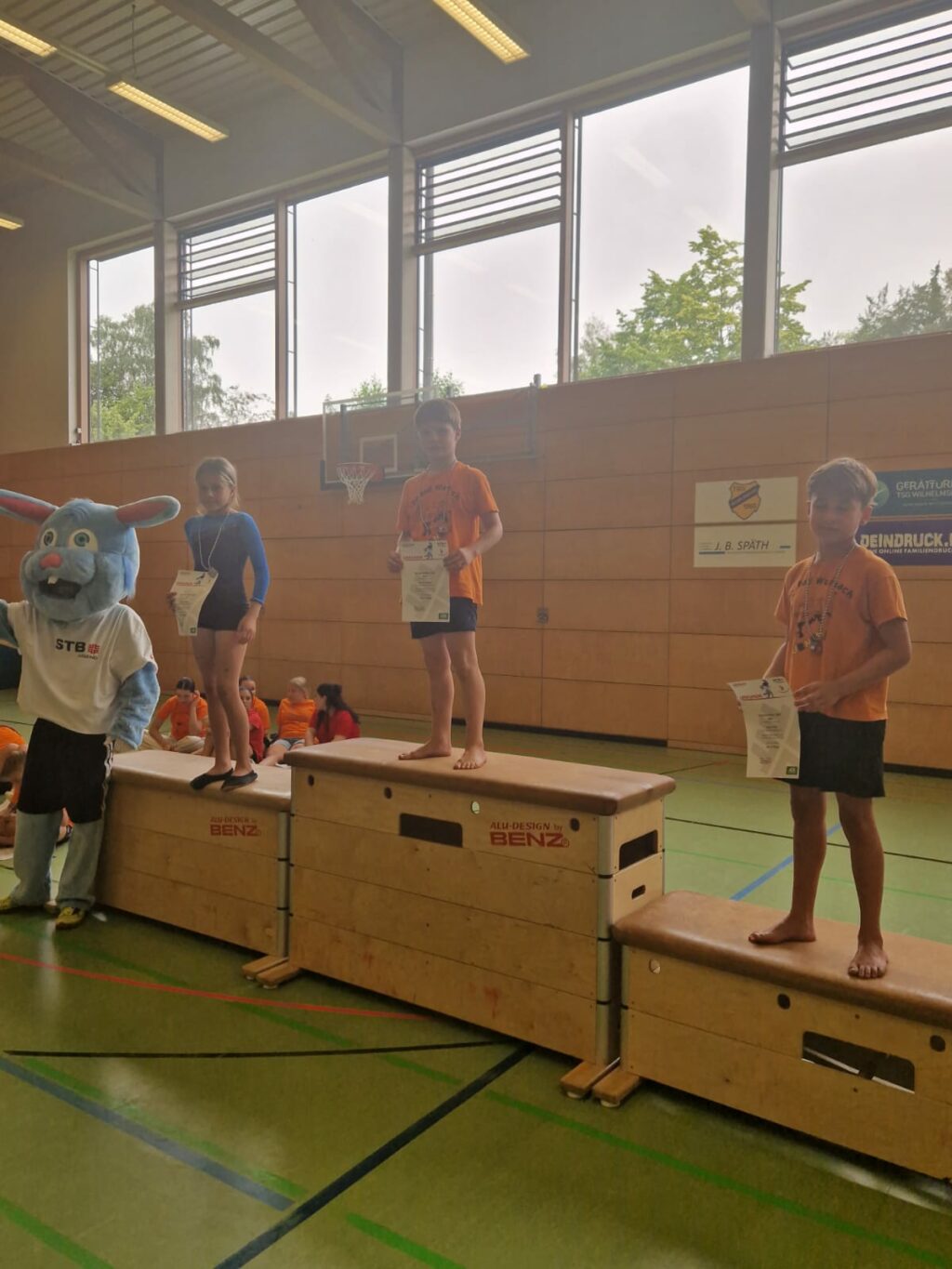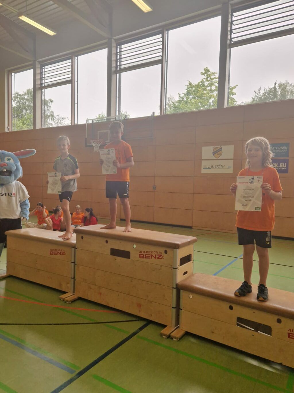 Alle Jungs der TSG bestritten den gemischten 6-Kampf (bestand aus Turnen und Leichtathletik). Die Mädchen der TSG turnten im Wahlwettkampf 3 aus 10 (Auswahl aus Turnen, Leichtathletik, Rope Skipping und Trampolin).