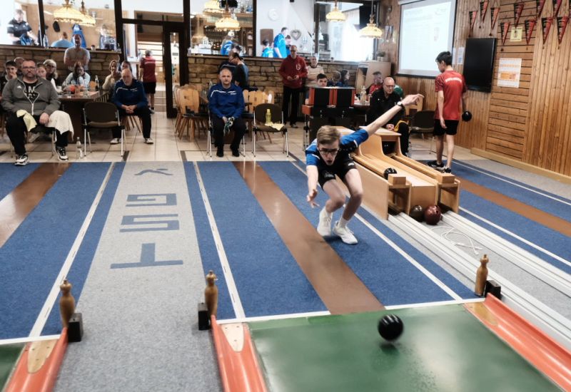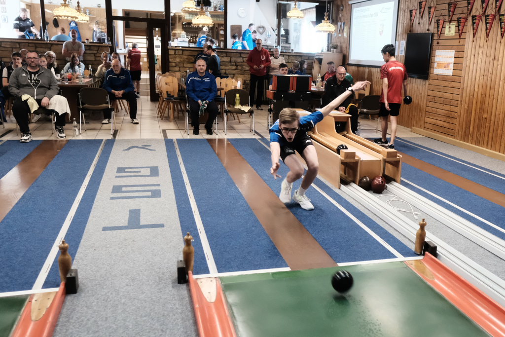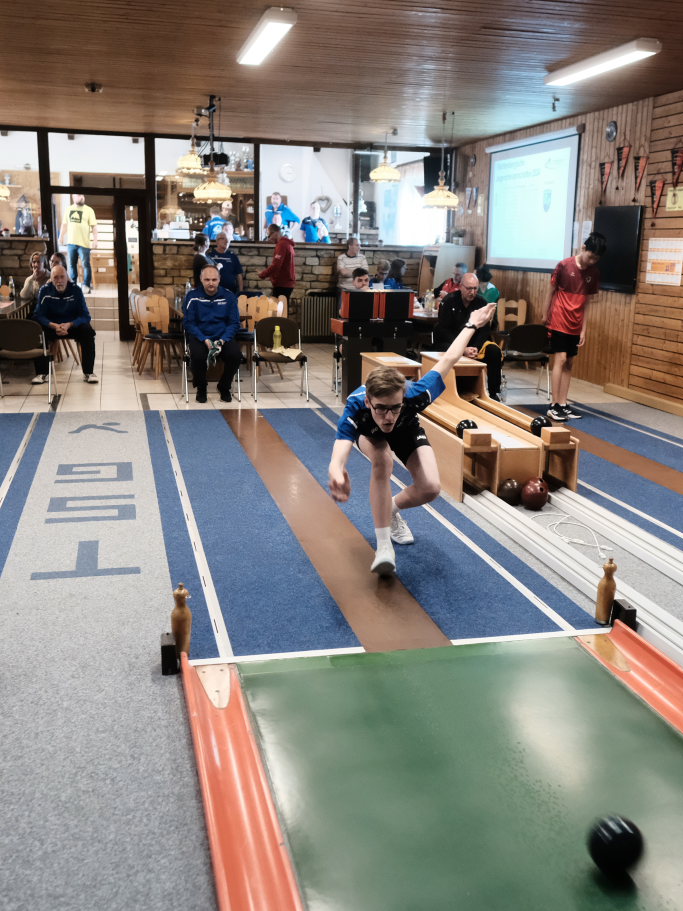 Der bei diesen Meisterschaften erfolgreichste TSG Nachwuchskegler Matteo Sgryska in Aktion.