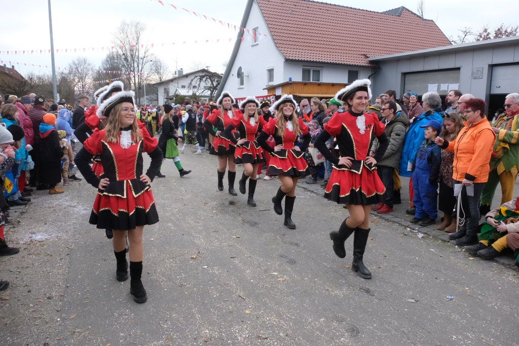 Doch nicht nur ANR-Zünfte aus der näheren Umgebung wie die Alttanner Höllteufel oder die Bullarätze aus Michelwinnaden oder die bereits erwähnten Bawaldbohle waren zum Freundschaftstreffen gekommen: Mit der Narrengilde Unterschwarzach kommt noch eine weitere ANR-Zunft aus der Großgemeinde. Diese hatte erst vor zwei Wochen ihr 25jähriges Bestehen mit einem Narrensprung gefeiert. Und auch bei den Schwaaz´r Butz waren bei der ANR-Aufnahme im Jahre 2013 die Haidgauer Pate gestanden. Und die Narrengilde war nicht allein gekommen: Die jungen Damen der Landjugend-Garde aus Unterschwarzach zeigten neben viel Bein auch einiges an Akrobatik.
