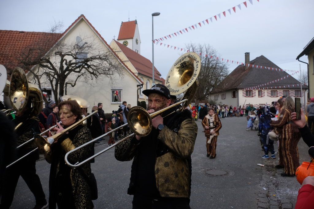 Neben Unterschwarzach vertraten natürlich die Riedmeckeler aus Bad Wurzach und die Langjupp aus Seibranz die Wurzacher Zünfte. Und natürlich sorgten einige Musikgruppen aus der Großgemeinde für die richtige Fasnetstimmung am Umzugsweg. Als da wären: die Guggenmusik Ziegelbach, der Fanfarenzug und die Schalmeien Riedspatzen aus Bad Wurzach, die Schalmeien Stroßa Hup´r aus Haidgau und die Vollgasbänd aus Seibranz sorgten mit vielen anderen auch nach dem Umzug in der Halle und in den anderen Feier-Locations noch weiter für Stimmung.