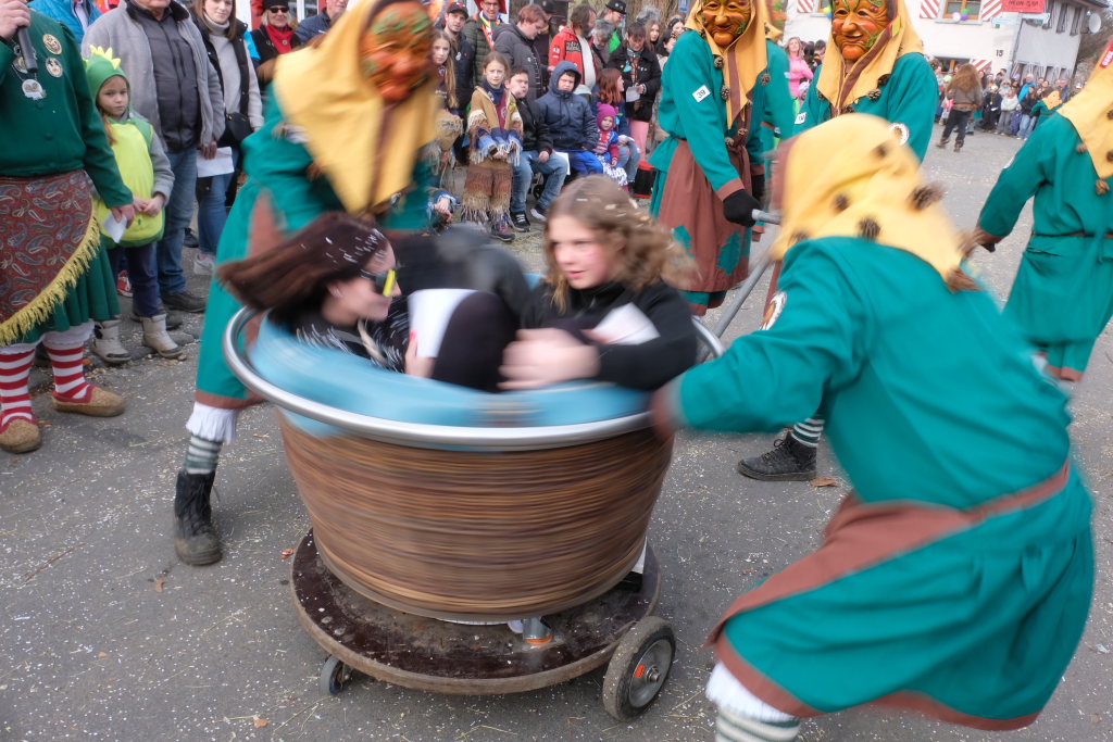 Mit riesigen Abordnungen waren die Bergatreuter Jordanhexen dabei ebenso wie die Eberhardzeller mit Zeller Schwarzer Katz, Neideck-Hexen aber auch den Ampfelbronner Holzwürm. Die größten Hexenpyramiden bauten die Hexenlieseln der Schwarz Veri Zunft, die Ölschwang Papierkrattler ließen schelmisch mittels ihrer Streckschere so manche närrische Kopfbedeckung verschwinden. Bekannt für ihre akrobatischen Stabsprünge sind die Brochenzeller Humpishexen.