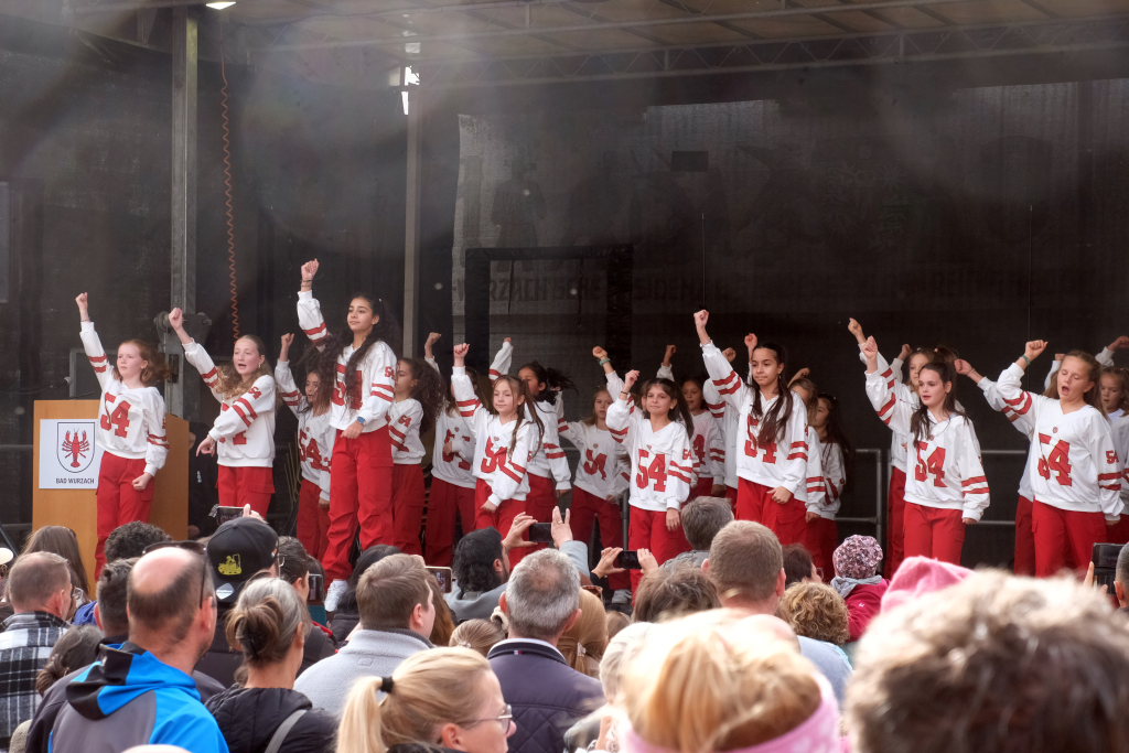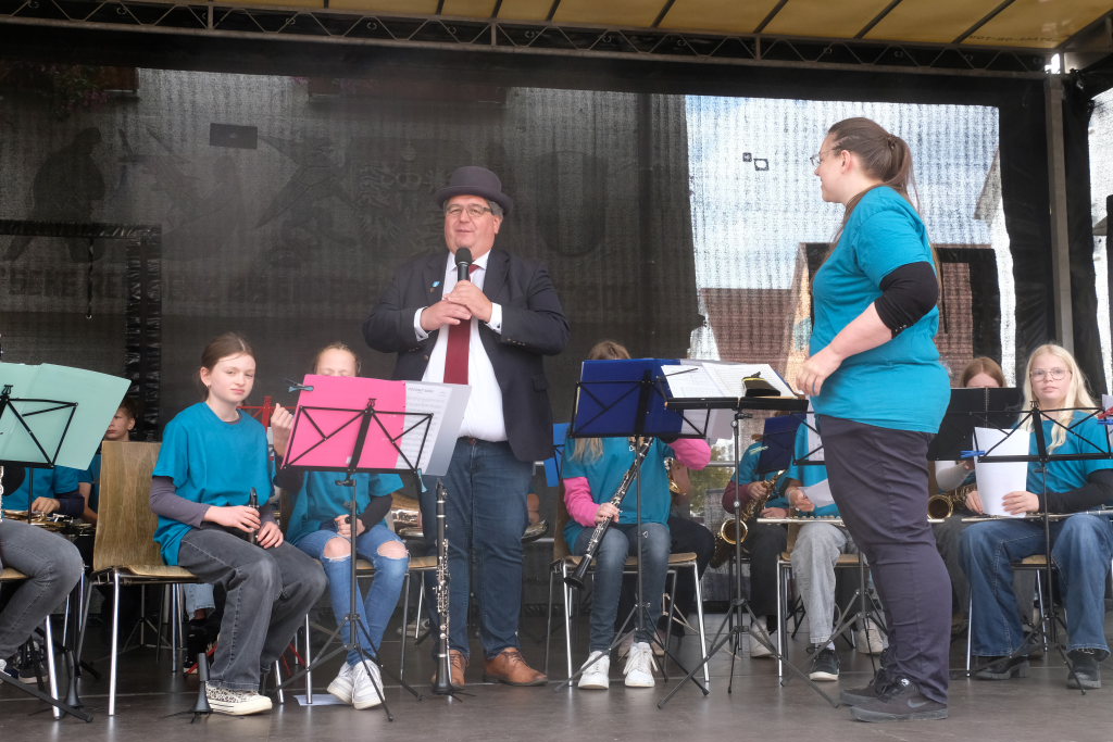 Danach war auf der Bühne der Auftritt eines „echten Kindes der Eingemeindung“ wie Moderator Berthold Leupolz die städtische Jugendmusikschule mit ihrer aktuellen Leiterin Eva Oberleiter nannte. Denn dort im direkt dem Rathaus gegenüberliegenden Schloss werden die Talente gefördert, aus denen die 10 Musikkapellen ihren Nachwuchs generieren. Danach präsentierte Alfred Bliem, der seit fast 20 Jahren sein Tanzstudio in der Markstraße betreibt, die coole Tanzshow seiner HipHop Gruppen. Den musikalischen Ausklang am Rathaus setzten die Mühlenfest Musikanten.