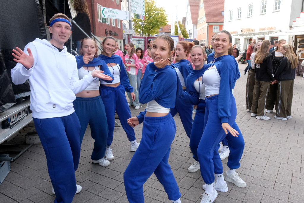 Lecker ging es weiter: Kaffee und vor allem ihre leckeren Kuchen machen den Stand der Landfrauen Bad Wurzach zu einem Muss-Besuch am verkaufsoffenen Sonntag. Weiter ging es auf dem Rundgang in der Markstraße, wo das Autohaus am Ried seine aktuelle Modellpalette präsentierte, zur Bühne am Rathaus. Nach dem Frühschoppen mit der Musikkapelle Eggmannsried, zu dem sich viele Besucher es sich an den Biertischgarnituren der Stadtkapelle, die beim Stadtbrunnen für die Bewirtung sorgte, bequem gemacht hatten, wurde die Bühne zur Tanzfläche: Die Youngsters und Teenies des SV Arnach präsentierten ihre neuesten „Move“.