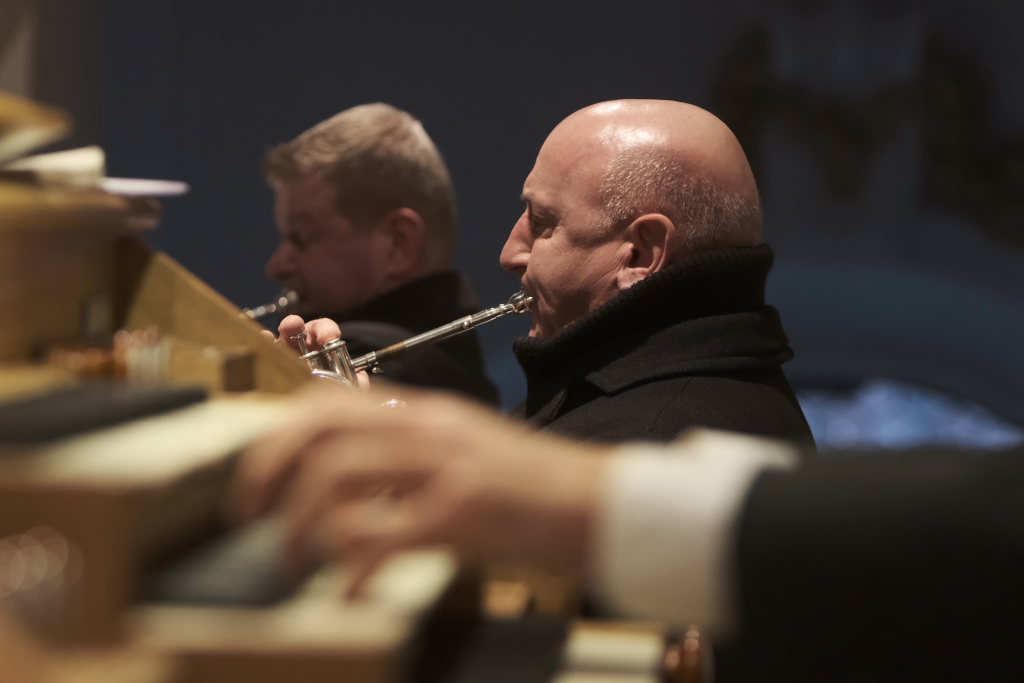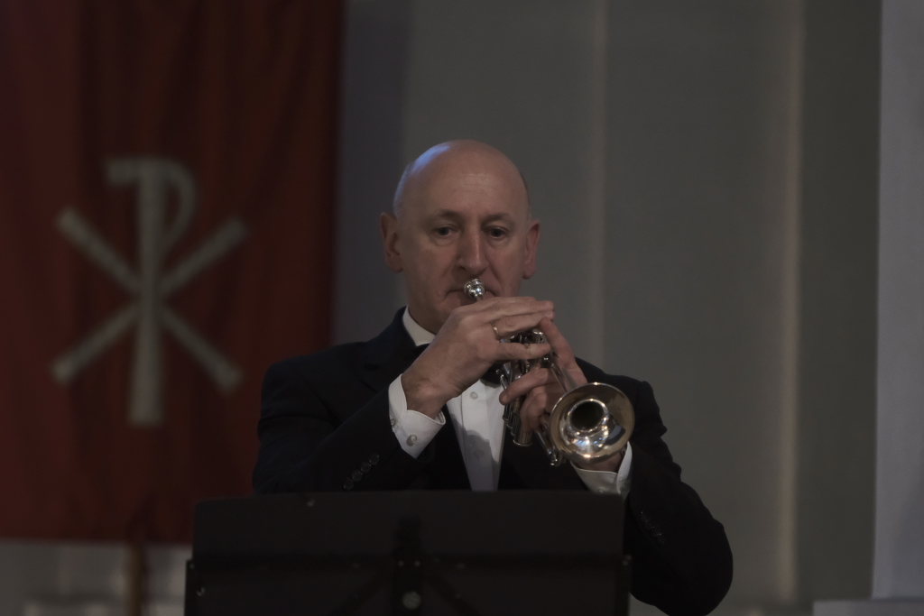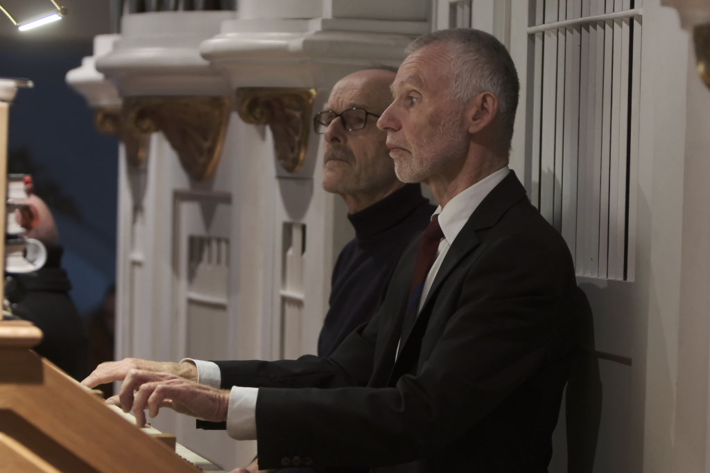 Robert Häusle spielte bei diesem Silvesterkonzert als Solist die Sonate Nr. 4 B-Dur op. 65, von Felix Mendelssohn Bartholdy – zunächst die Sätze Allegro con brio und während die Trompeter sich auf den Weg in den Chorraum machten, den Satz Andante religioso. Danach bei deren Aufstieg zur Empore den 3. Satz Allegretto des trotz seines nur 39 Jahren währenden Lebens sehr produktiven Komponisten der Romantik aus Hamburg. Und schließlich als vorletztes Stück des Programmes den Satz „Allegro maestoso e vivace“.