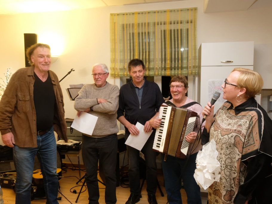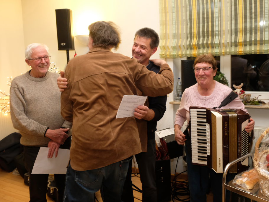 Zur Melodie von Udo Jürgens „Mit 66 Jahren“ entboten sie einen ersten musikalischen Gruß mit speziellem Text: „Vor vielen, vielen, ein hübscher junger Mann als Schulsozialarbeiter zu uns nach Wurzach kam, Und auch Susanne Baur hat viel mit ihm gemacht, sie sagt noch heute, mit dem Ede – des war halt a Sach“ heißt es dazu in der ersten Strophe. Nach dem Prinzip von „Zuckerbrot und Peitsche“ bekam der Geehrte von den Bänkelsängern allerdings in der zweiten Strophe auch seine Jugendsünden aufs musikalische Brot geschmiert: Die Anfänge mussten wohl chaotisch gewesen sein, ausgemachte Treffen wurden von ihm gar nicht oder mit großer Verspätung wahrgenommen worden, wie Susanne Baur aus dem Nähkästchen der Erinnerungen plauderte.