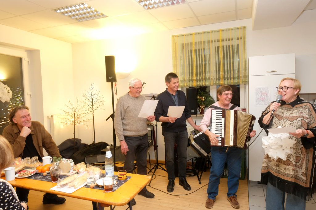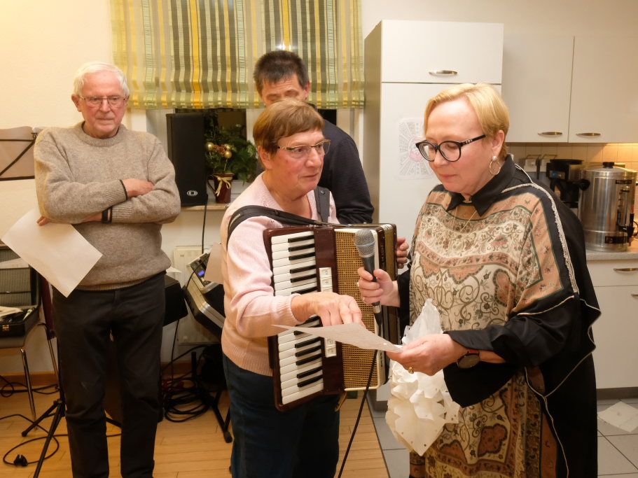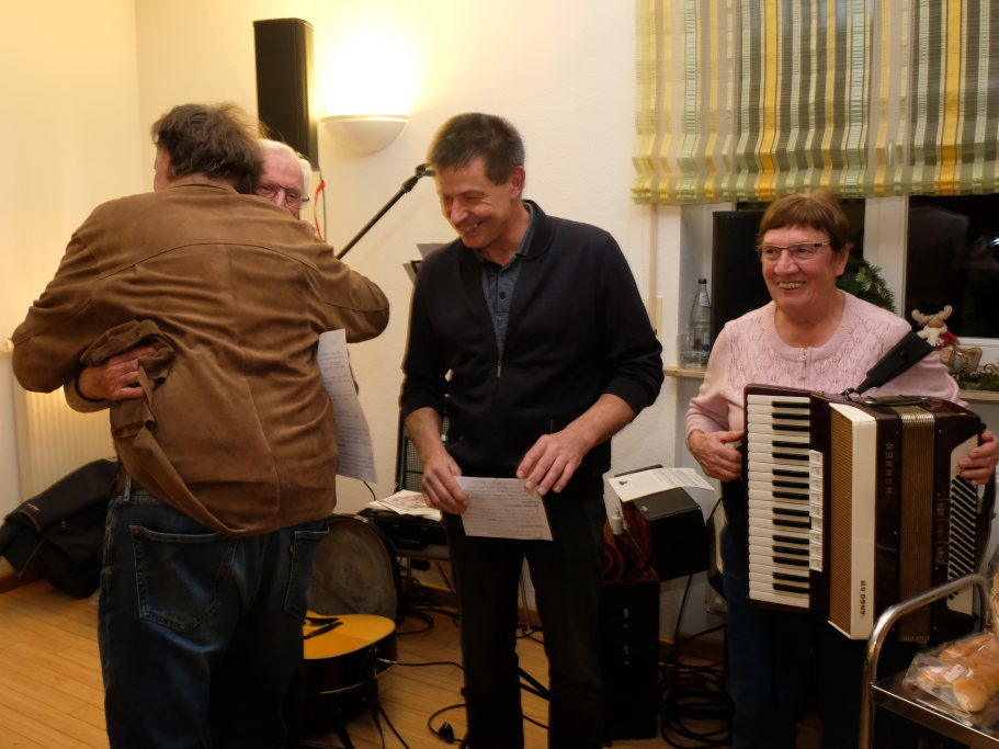 So weit war alles wie immer, es bewegte sich eine aufgekratzte Susanne Baur tanzend durch die Reihen der Gäste, als der nichts ahnende Edmund Butscher das poppige „Feliz Navidad“ anstimmte. Und als „Ede“ dann seine Panflöte zückte, flogen ihm nicht nur die Herzen der reiferen Damen zu.