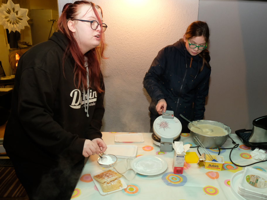 Bad Wurzach – Mit Bratwurst- und Waffelduft wurden die Festbesucher an diesem Abend „verzaubert“. Pavillons – für das süße Dessert in Form von selbstgebackenen Waffeln für die zahlreichen Festbesucher. Und in der „ warmen Stube“, wie Susanne Baur den Gemeinschaftsraum in ihrer Einladung nannte, sorgten die vielen Helferinnen mit Glühwein, Punsch und Kaltgetränken dafür, dass niemand Durst leiden musste.