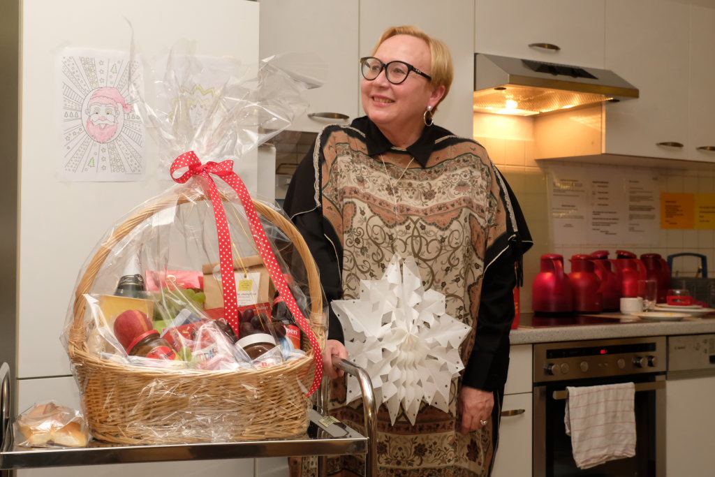 Gleich einen Servierwagen brauchte Baur für das Abschiedsgeschenk, das sie Edmund Butscher mitgebracht hatte: Einen großen Geschenkkorb mit allerlei lokalen Leckereien.