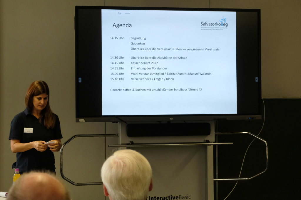 Die Vereinsvorsitzende Marina Fahrenbach freute sich, dass rund 30 Mitglieder, darunter auch Dr. Ute Schmidt Berger, die vor 50 Jahren die erste weibliche Lehrerin am Salvatorkolleg gewesen war, Superior Pater Konrad Werder und Provinzial Friedrich Emde, den Weg zu der Versammlung gefunden hatten.
