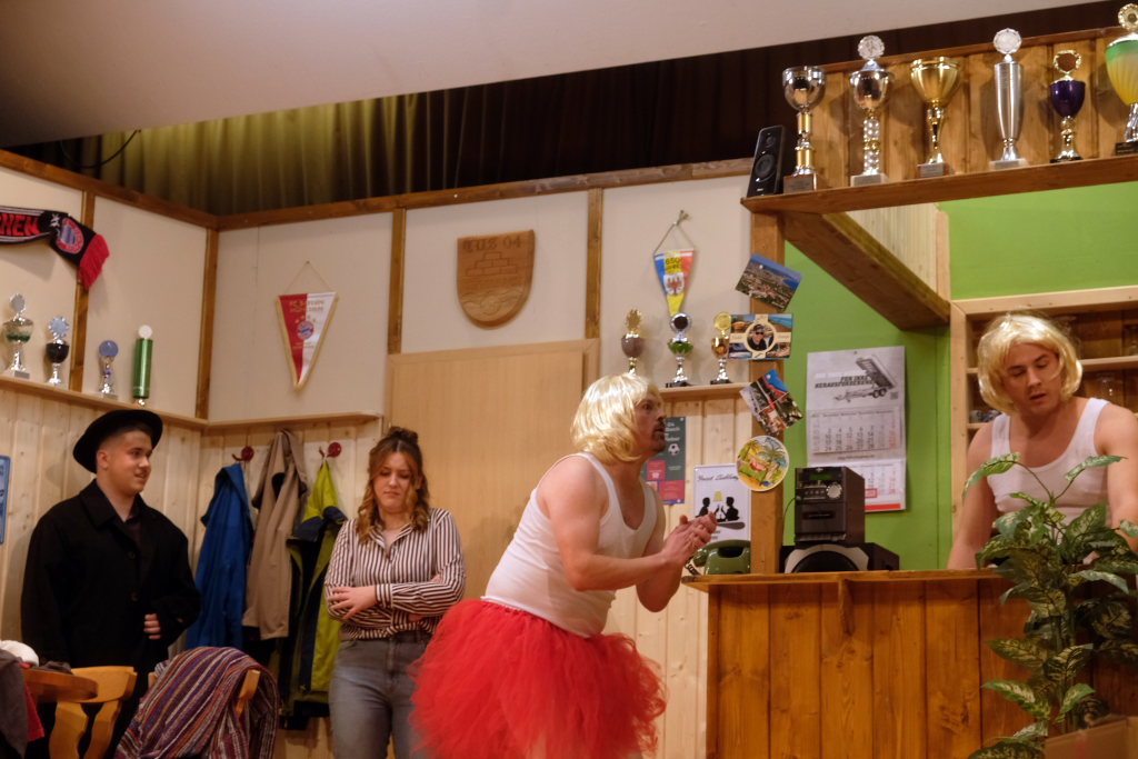 Das Publikum, unter dem sehr viele Stammgäste bei den Aufführungen des Bauerntheater Ziegelbach sind, jedenfalls amüsierte sich über die Gags und Pointen köstlich, etwa als die Kicker den armen Kalle zur Ausnüchterung an einen Garderobenhaken hingen, oder als die Damen mit frisch erworbener Stola den Herren im Gastraum ihren Tanz vorführten.