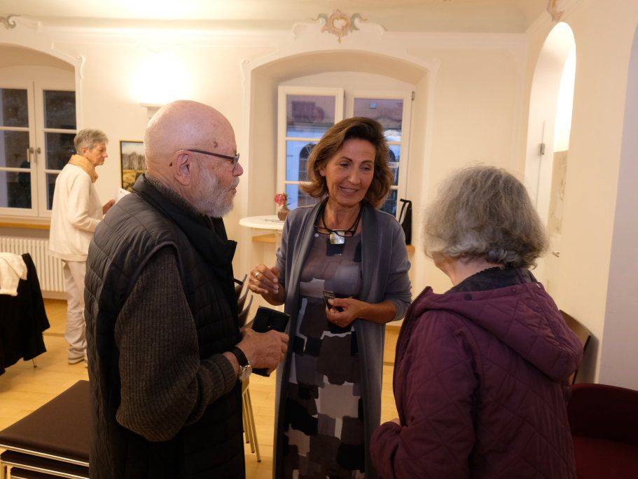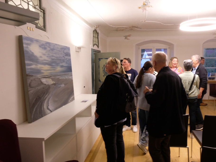 Der stellvertretende Bürgermeister Klaus Schütt freute sich in seinem Grußwort darüber, dass so viele Besucher zu der Ausstellungseröffnung gekommen waren. Ebenso fand er es nett, dass eine Künstlerin aus dem Landkreis Biberach – Uphues-Klee lebt und arbeitet in Ringschnaidt – in den wunderbaren Räumen des ehemaligen Klosters ausstellt. Sehr froh sei er, dass Doris Schäfer und Christel Linge die Organisation der Ausstellungen ehrenamtlich übernehmen. Weil die Künstlerin auch einige Bilder aus dem Wurzacher Ried ausstellt, vergaß er natürlich nicht, Werbung in eigener Sache zu machen: Er verwies auf das 40jährige Jubiläum des Naturschutzzentrums Wurzacher Ried, dem ältesten in ganz Baden-Württemberg.
