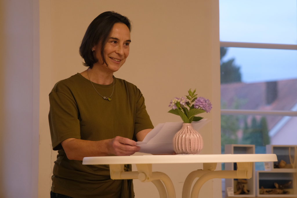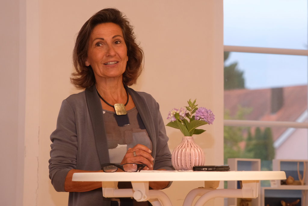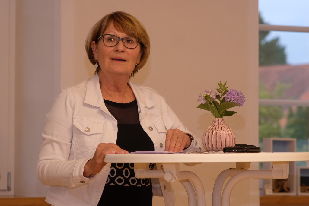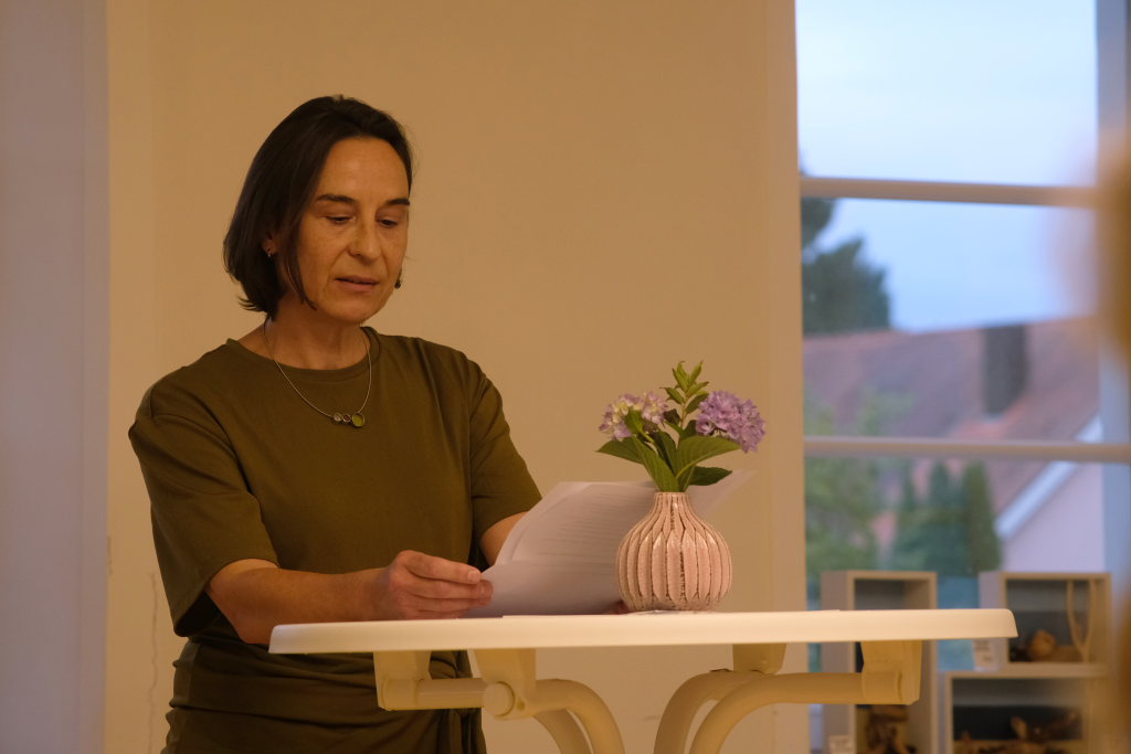 Christel Linge, die gemeinsam mit Doris Schäfer die Ausstellungen der städtischen Galerie in Maria Rosengarten organisiert, hieß die Künstlerin Marion Uphues-Klee dieser 258. Kunstausstellung der städtischen Galerie gemeinsam mit den zahlreichen Gästen herzlich willkommen.