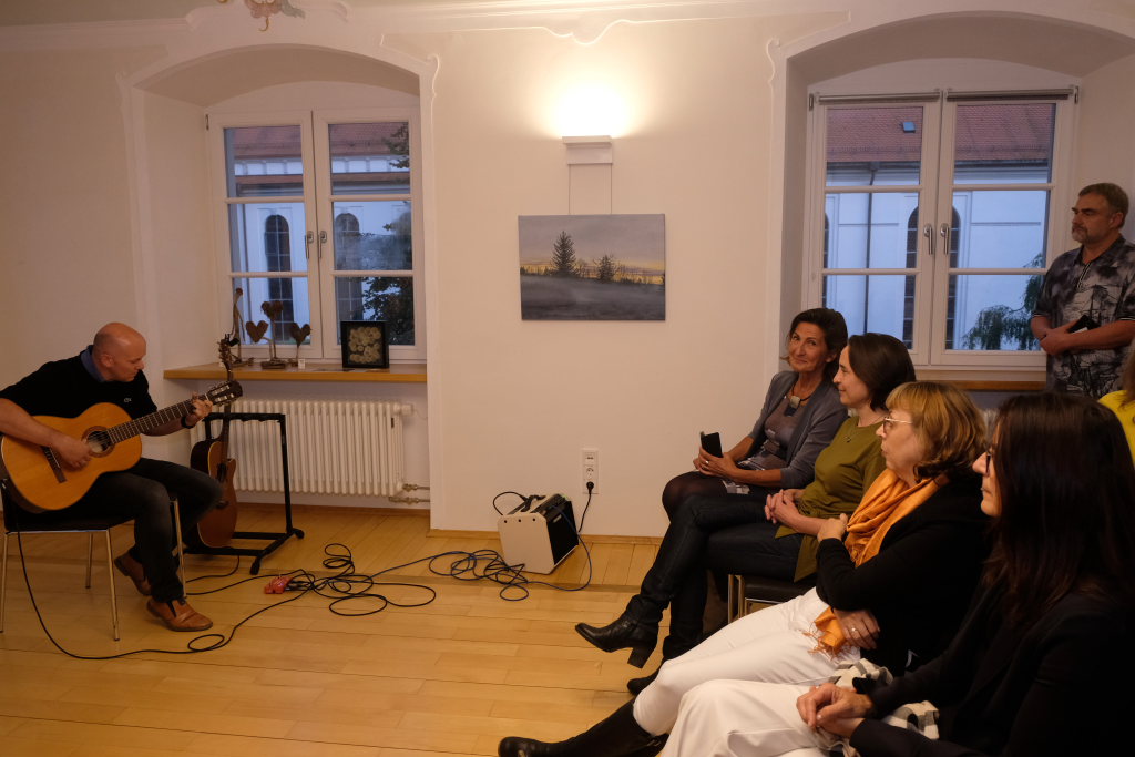 Bad Wurzach – Marion Uphues-Klee stellt unter dem Titel „Reise durch Licht und Schatten“ noch bis zum 30. Oktober 47 Ölgemälde im fotorealistischen Stil von der Miniatur im Format 11 x 16cm bis zum Großformat aus. Zur Vernissage kamen rund 70 Kunstinteressierte, der renommierte Gitarrist Martin Bergbauer sorgte für die musikalische Umrahmung und Ruth Aytner setzte in ihrer Laudatio die Künstlerin verbal ins rechte Licht.