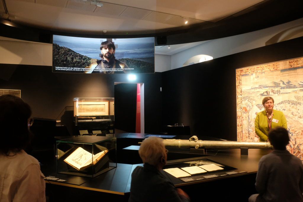 Stadtarchivar Wild gab während der Busfahrt eine kleine Einführung in die Ausstellung. „Es ist schon relativ selten, dass eine solche Ausstellung nicht zentral –etwa in Stuttgart – gezeigt wird.“ Aber es sei eine wunderbare Gelegenheit gewesen, diese Ausstellung quasi am Ort des Geschehens zu zeigen. Er erläuterte auch die Gründe, warum sich der „gemeine Mann bzw. Bürger“ gegen die Obrigkeit aus Adel und Klerus erhob. Dabei seien unter den Aufständischen durchaus wohlhabende Bürger gewesen.
