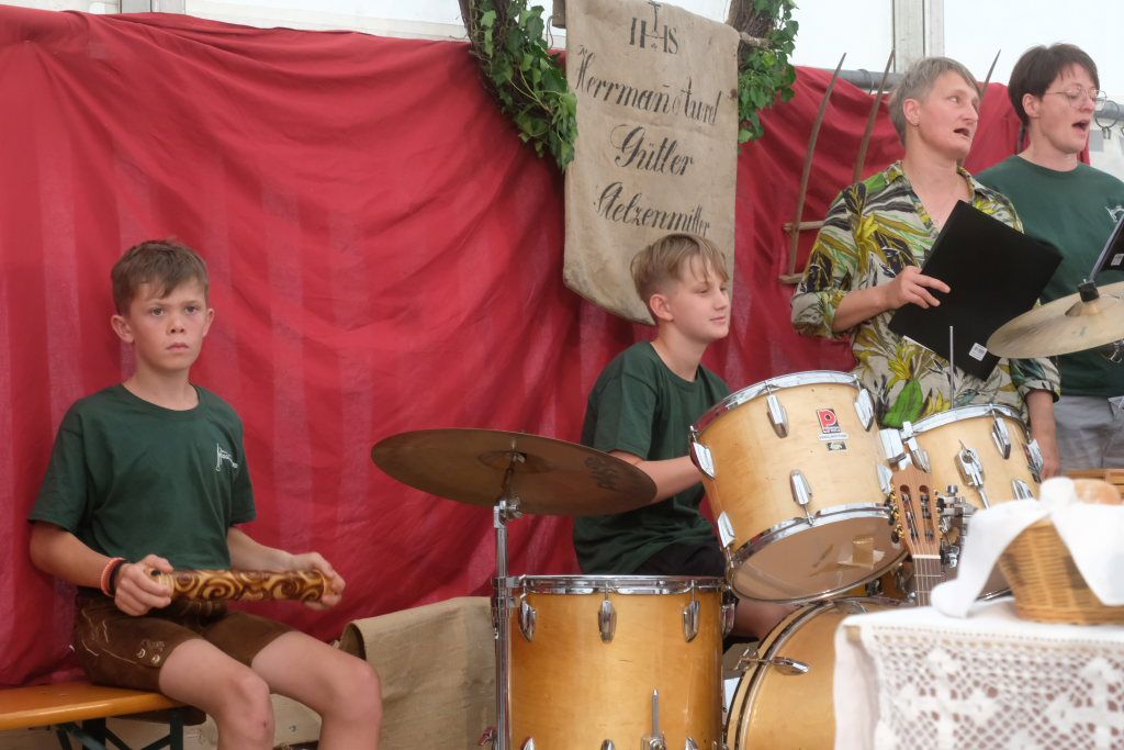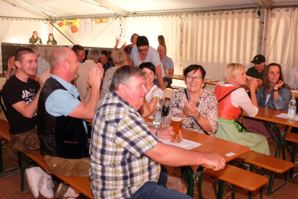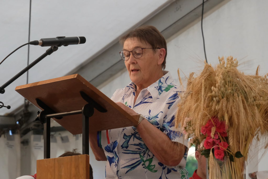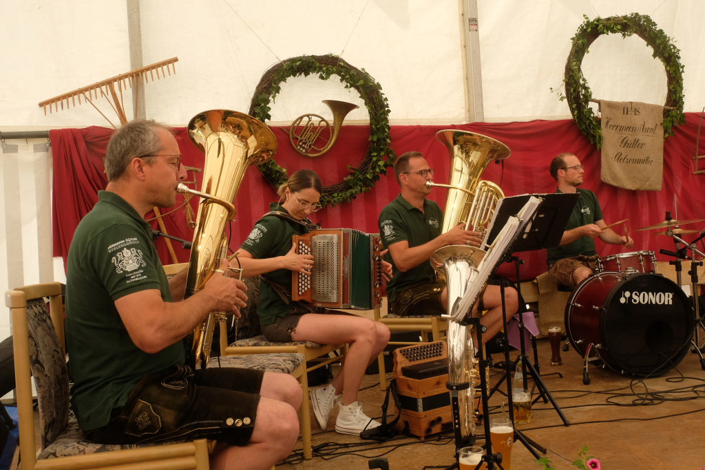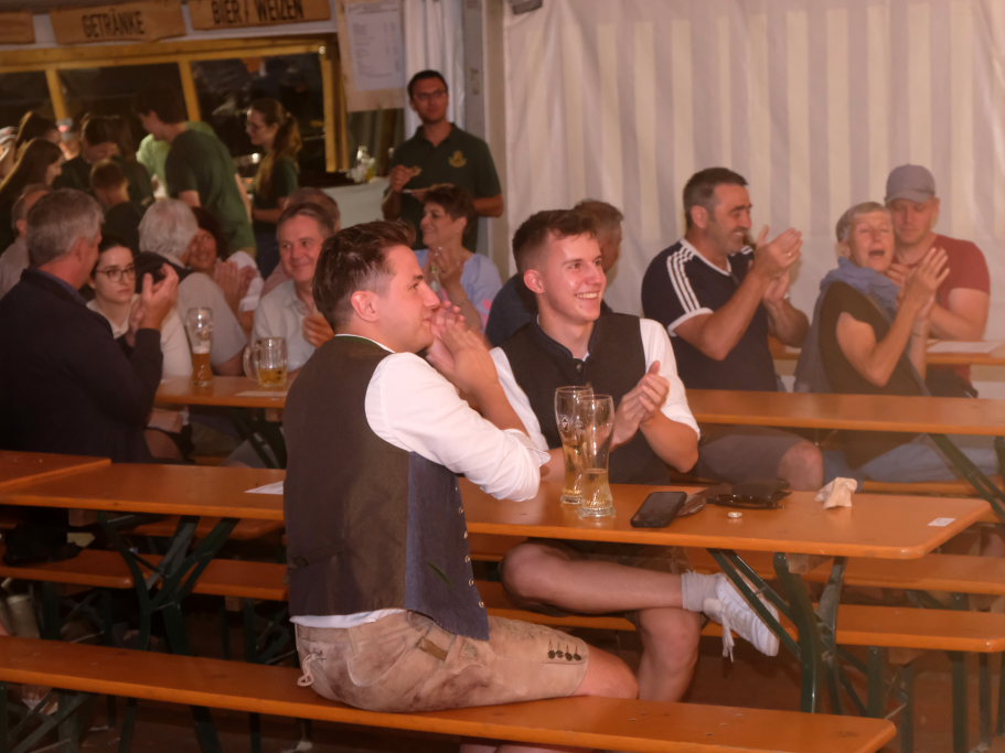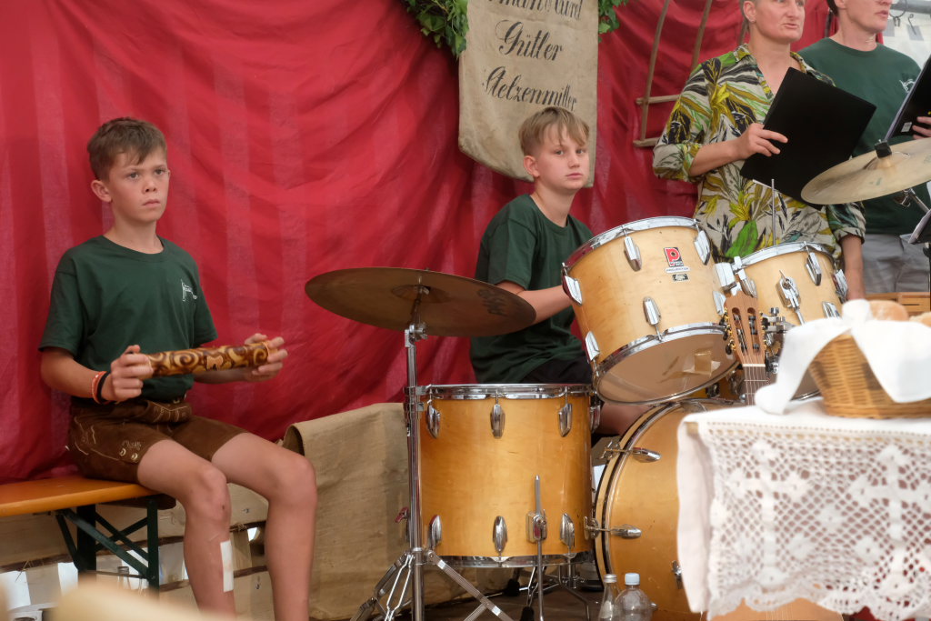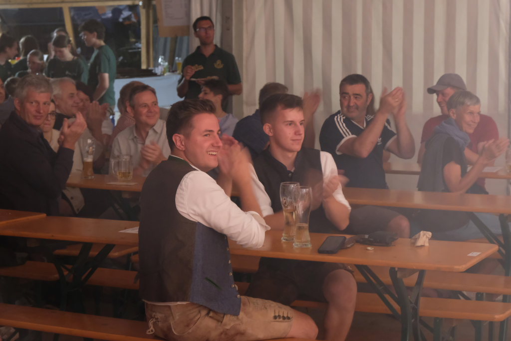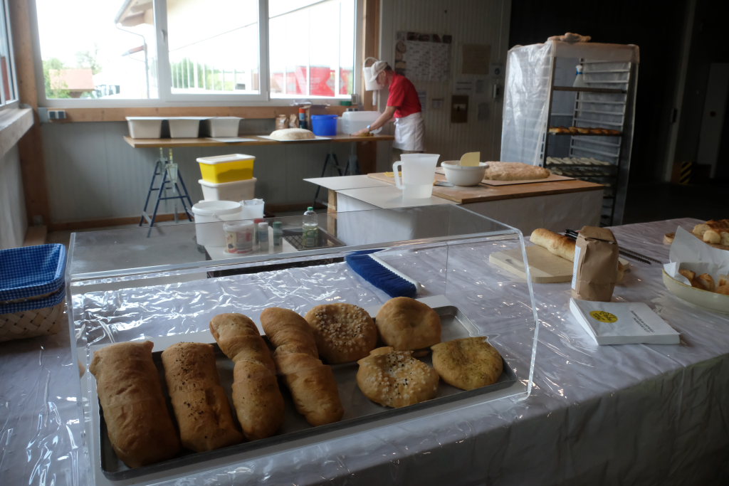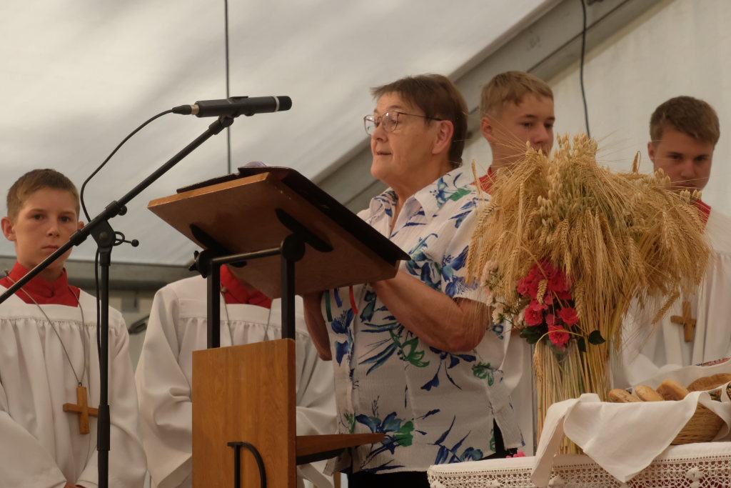 Doch die Nacht wurde für die „Schaffer“ des Musikvereines nur kurz, musste doch der Zeltgottesdienst und der Frühschoppen am Sonntagmorgen noch vorbereitet werden. Dieser wurde von Pastoralreferent Matthias Winstel von der Seelsorgeeinheit Bad Wurzach zelebriert, musikalisch unterstützt von einem Instrumentalensemble und einem Projektchor der Kirchengemeinde. Anstelle der Kommunion verteilte Winstel eigens von Bäcker Schneider in Haidgau gebackenes Brot unter den Gottesdienstbesuchern, das diese miteinander brechen durften und dabei möglichst viel miteinander reden sollten.